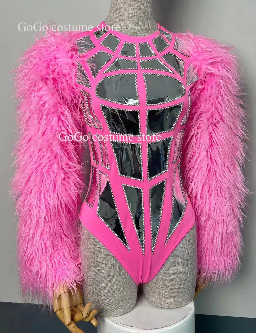Розовый большой меховой блестящий кожаный модный костюм певицы для похудения бар ночной клуб на день рождения Выпускной