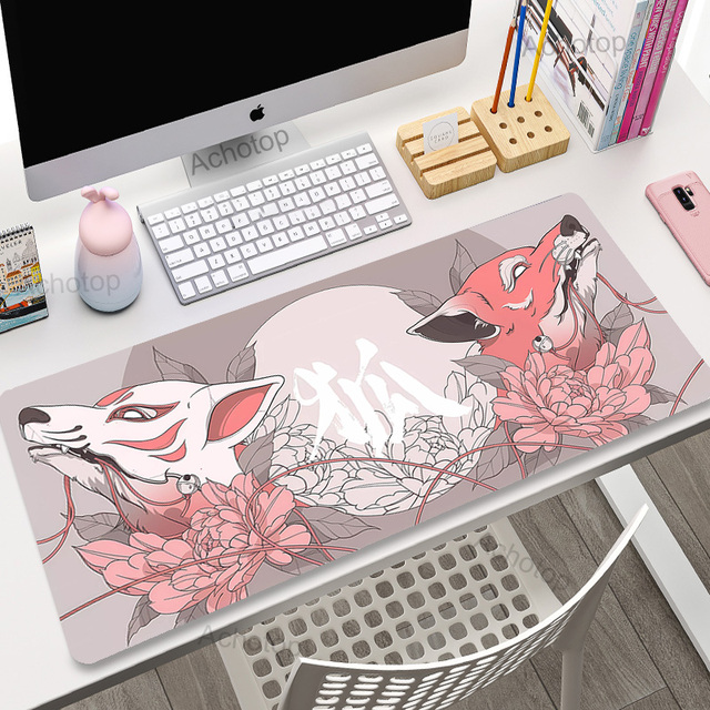 Розовый Лисий Настольный коврик, игровые коврики для мыши Kawaa, коврик для мыши XXL, Большие Офисные Настольные Коврики 900x400, большой коврик для мыши, домашние коврики для мыши для компьютера