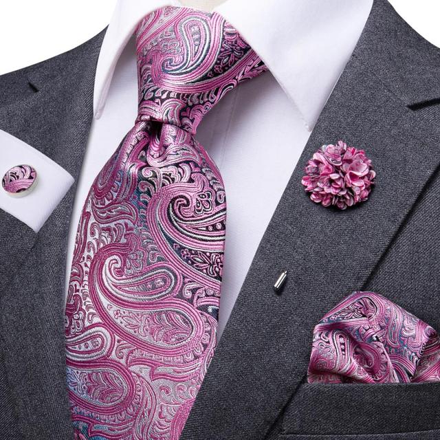 Розовый однотонный Шелковый Свадебный галстук с цветочным принтом для мужчин, удобная запонка, бутоньерка, мужской галстук, модный дизайн, деловая вечеринка, дропшиппинг, привет-галстук
