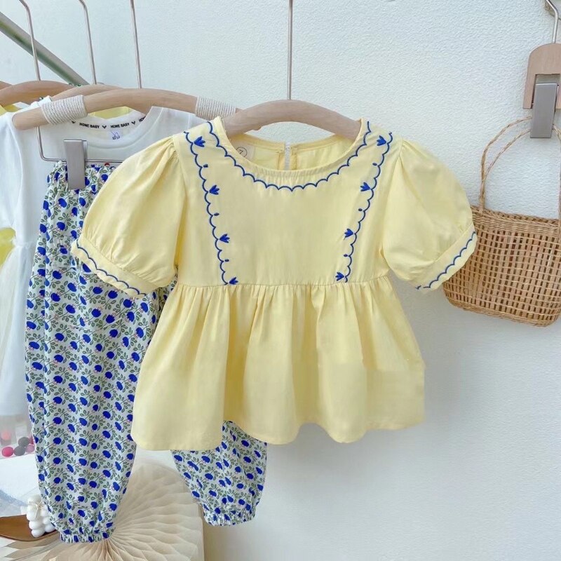Рубашка и штаны с вышивкой для девочек 2-7 лет