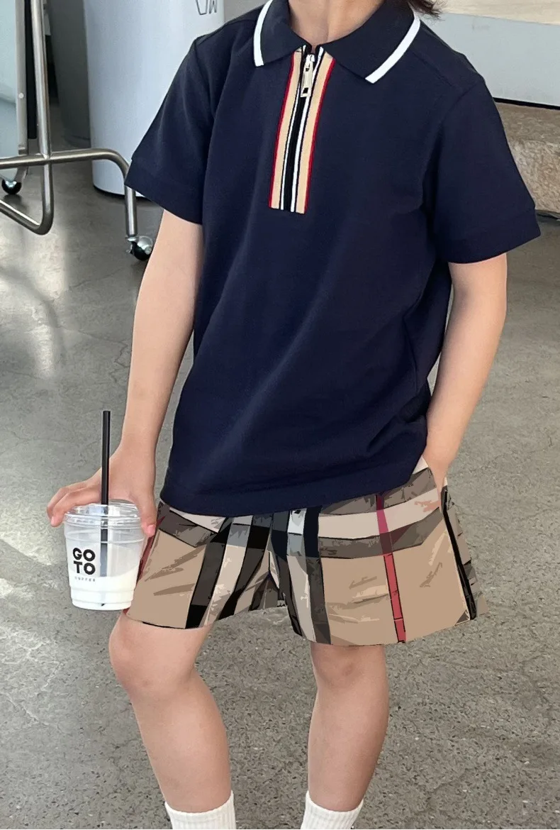 Рубашка-поло из хлопка пике темно-синего цвета с молнией для мальчиков