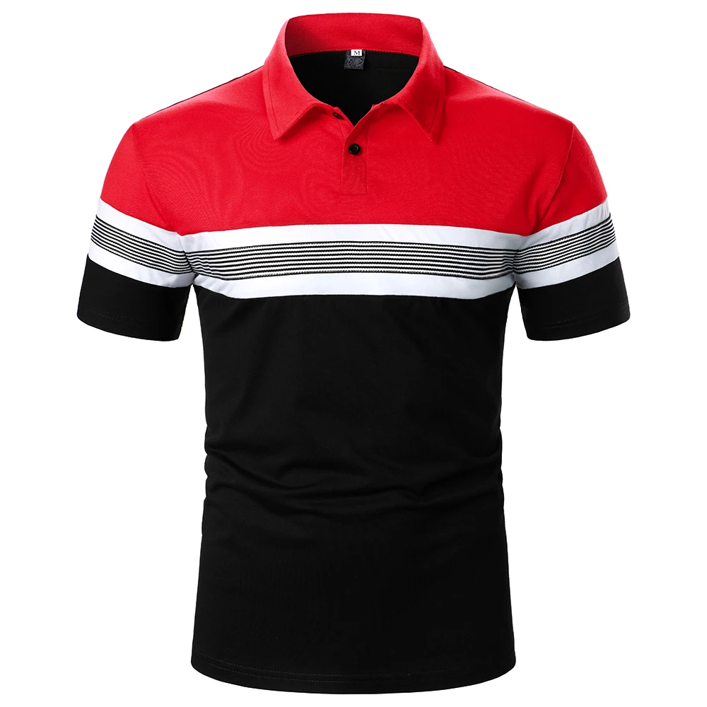 Рубашка-поло мужская с коротким рукавом, Повседневная модная полосатая рубашка-поло с украшением из ленты, контрастных цветов, лето