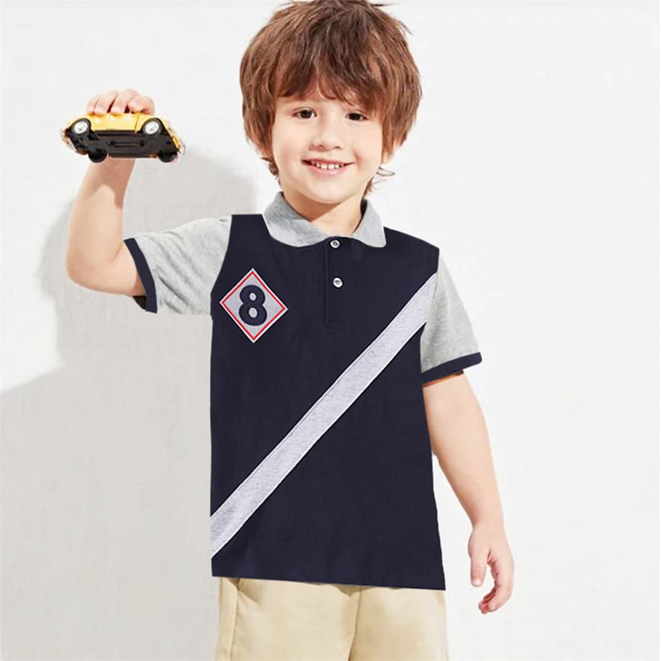 Летняя детская одежда для мальчиков Хлопковая Детская рубашка-поло для мальчиков Топы для маленьких мальчиков Пэчворк Футболки из ткани с вышивкой Модная одежда для 2-12 лет Повседневная футболка Летние топы для мальчиков Рубашка поло с коротким рукавом 2-12 лет Детские хлопковые футболки Одежда из Лоскутной Ткани Дети № 8 повседневные футболки Motion