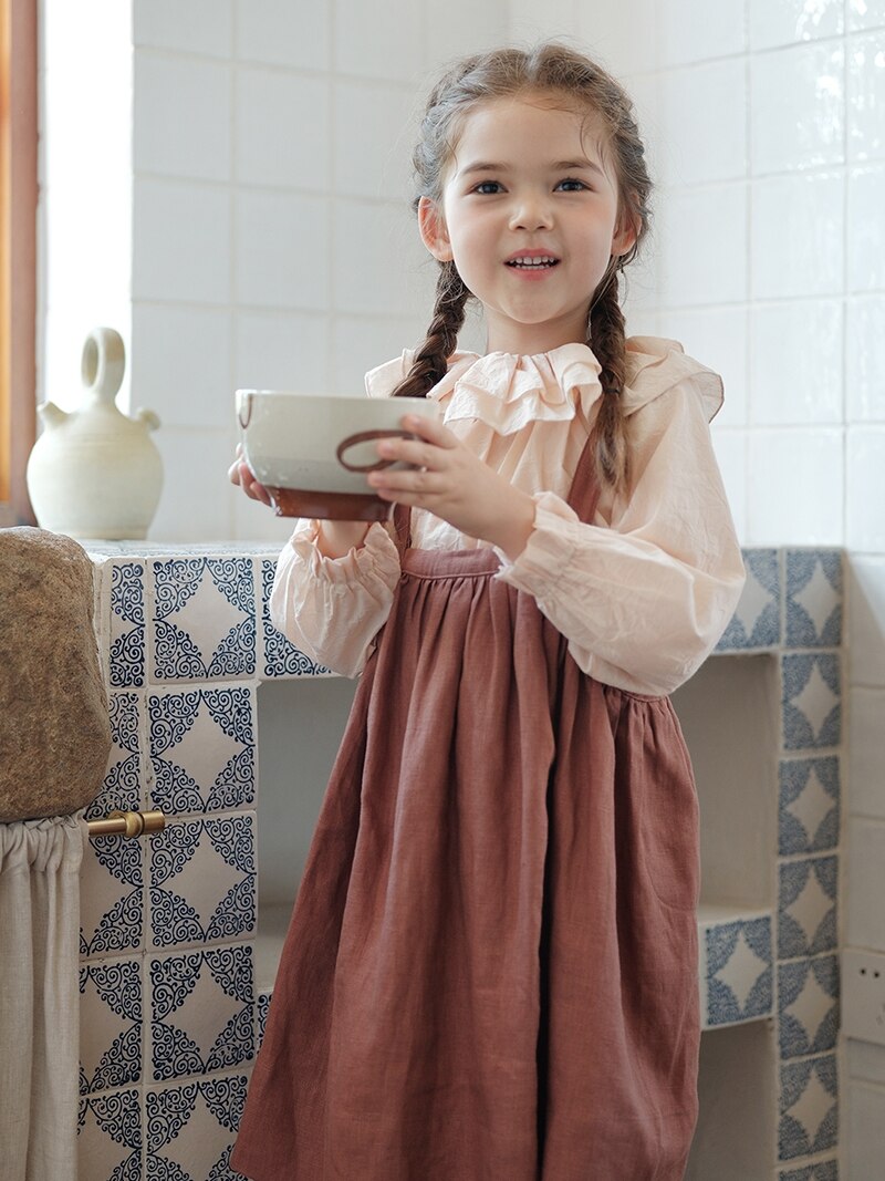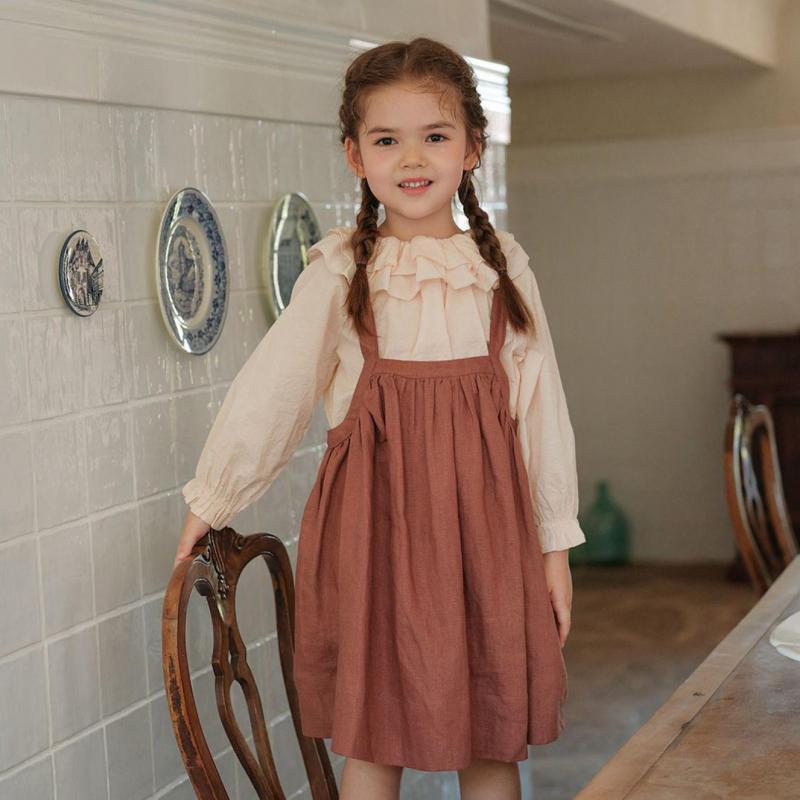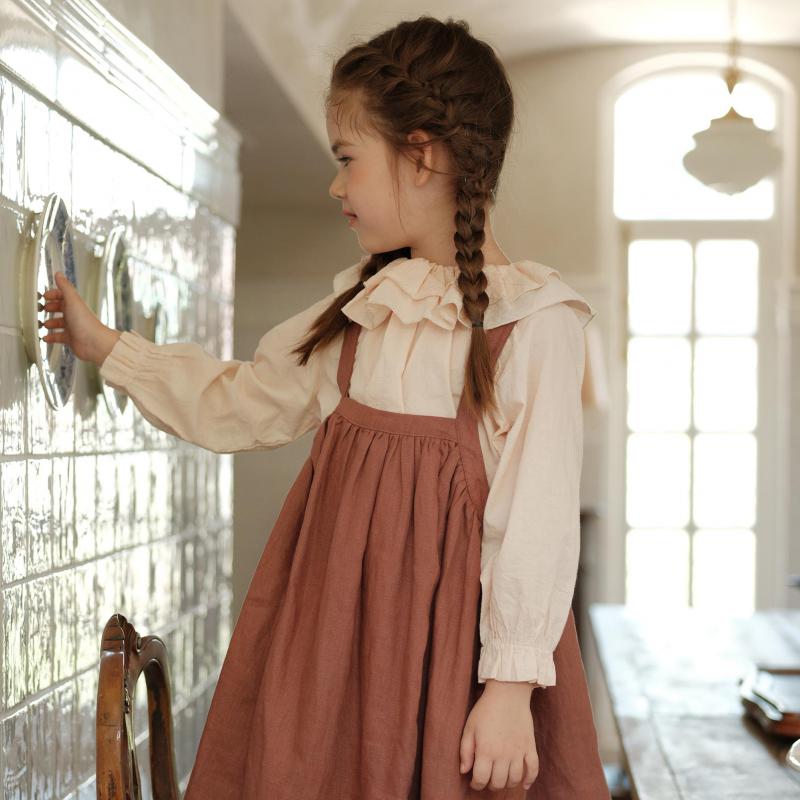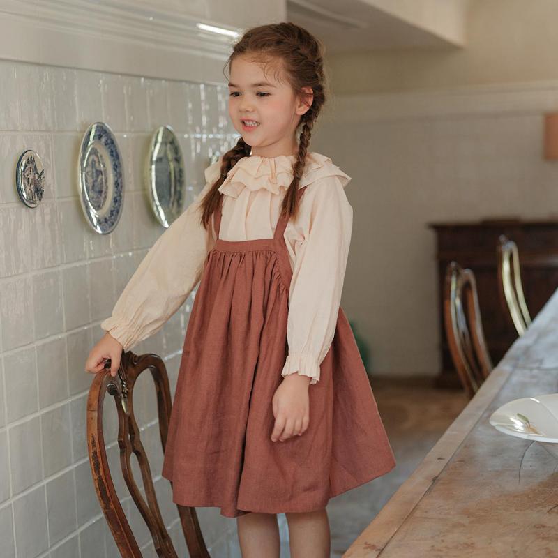 Рубашка с длинным рукавом и юбка на бретелях для девочек