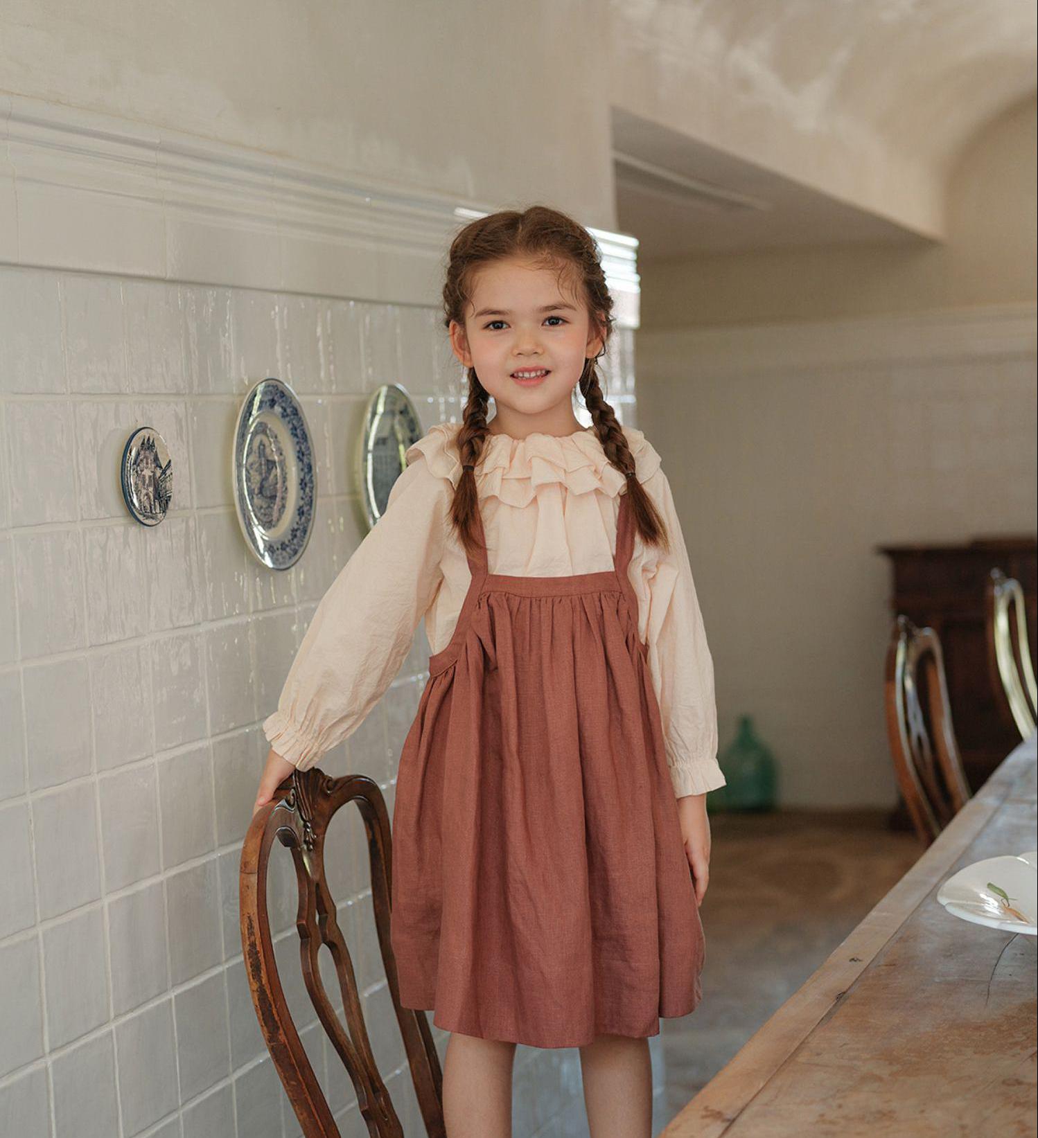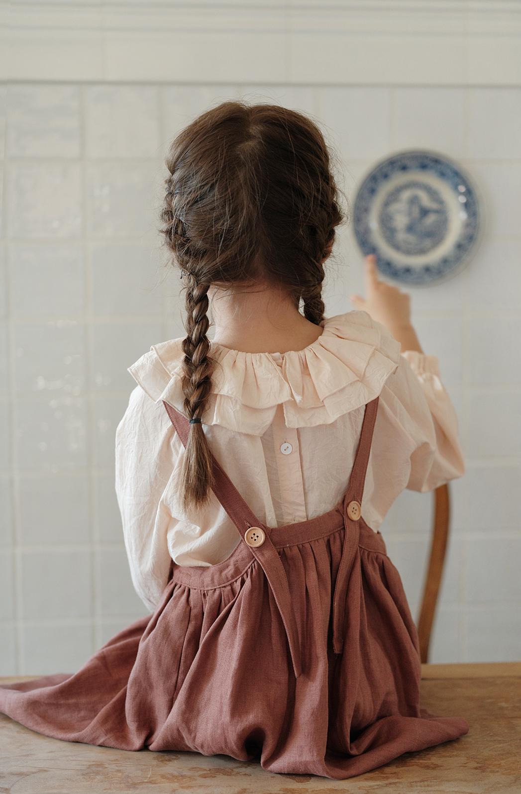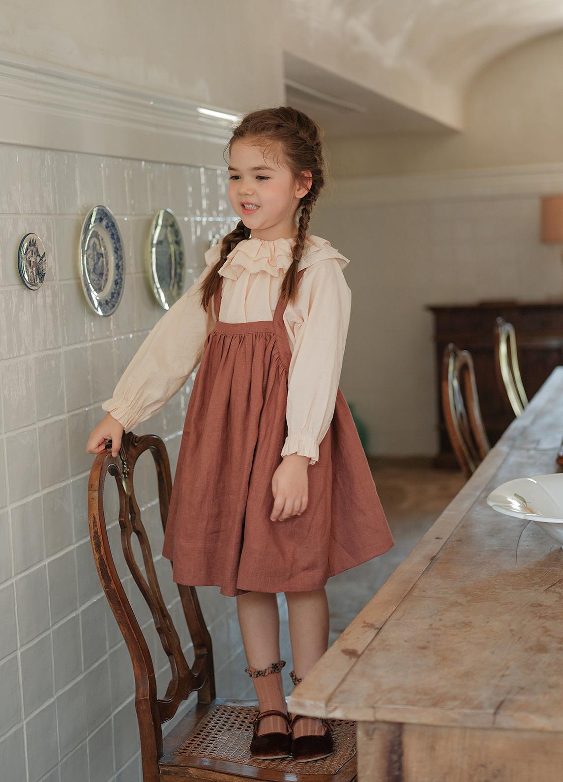Рубашка с длинным рукавом и юбка на бретелях для девочек