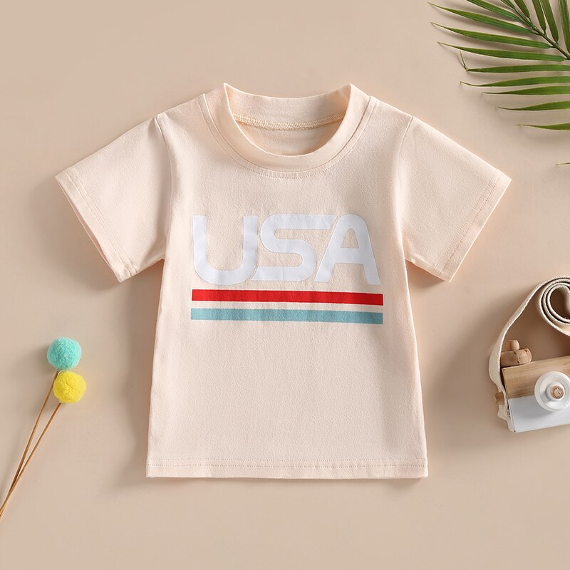 Описание: Детские футболки на День независимости Мальчики Девочки Футболки с коротким рукавом и принтом в полоску с круглым вырезом Летние повседневные Модные топы