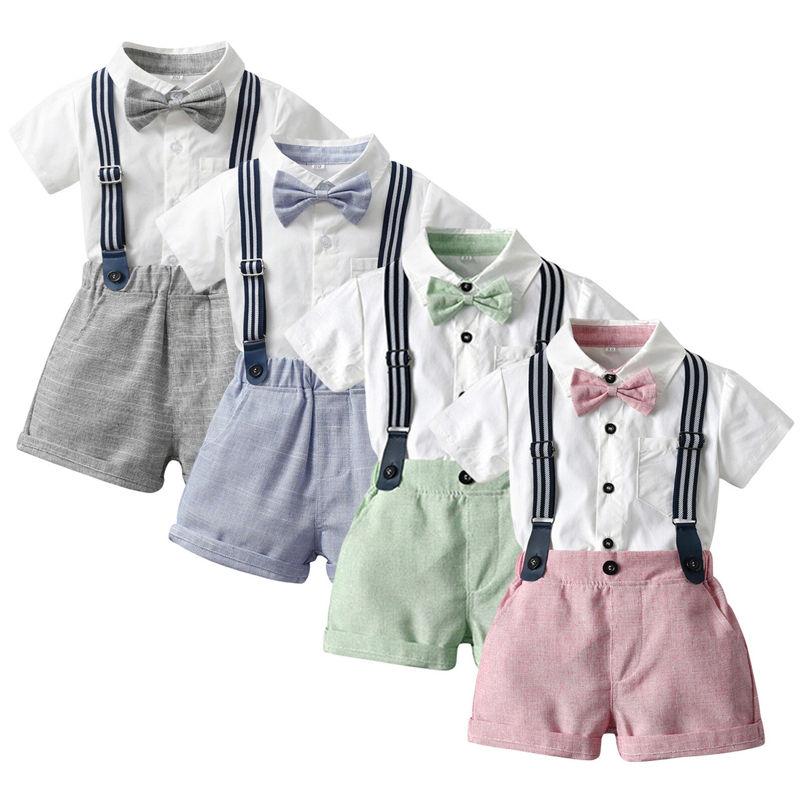 Рубашка с короткими рукавами для маленьких мальчиков; Топы; Шорты с подтяжками; Одежда для маленьких джентльменов; Одежда для новорожденных