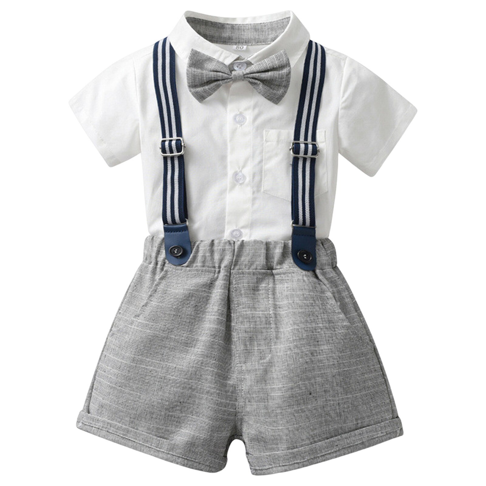 Рубашка с коротким рукавом для маленьких мальчиков, шорты с подтяжками, Детские наряды джентльмена
