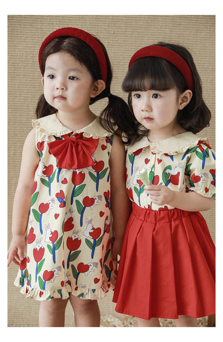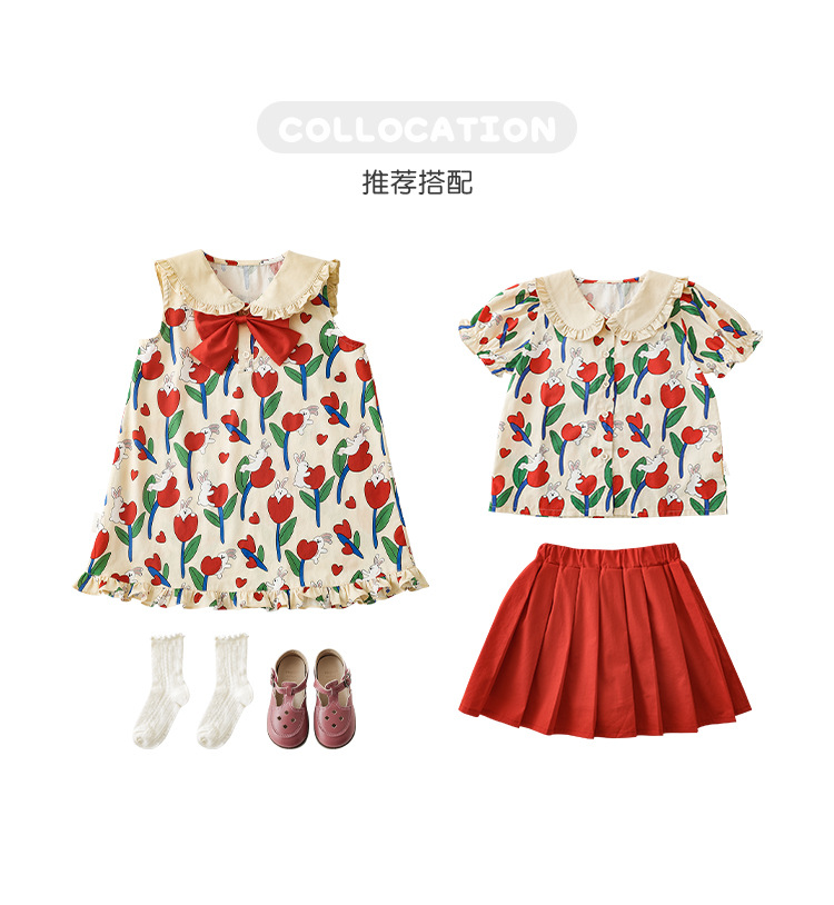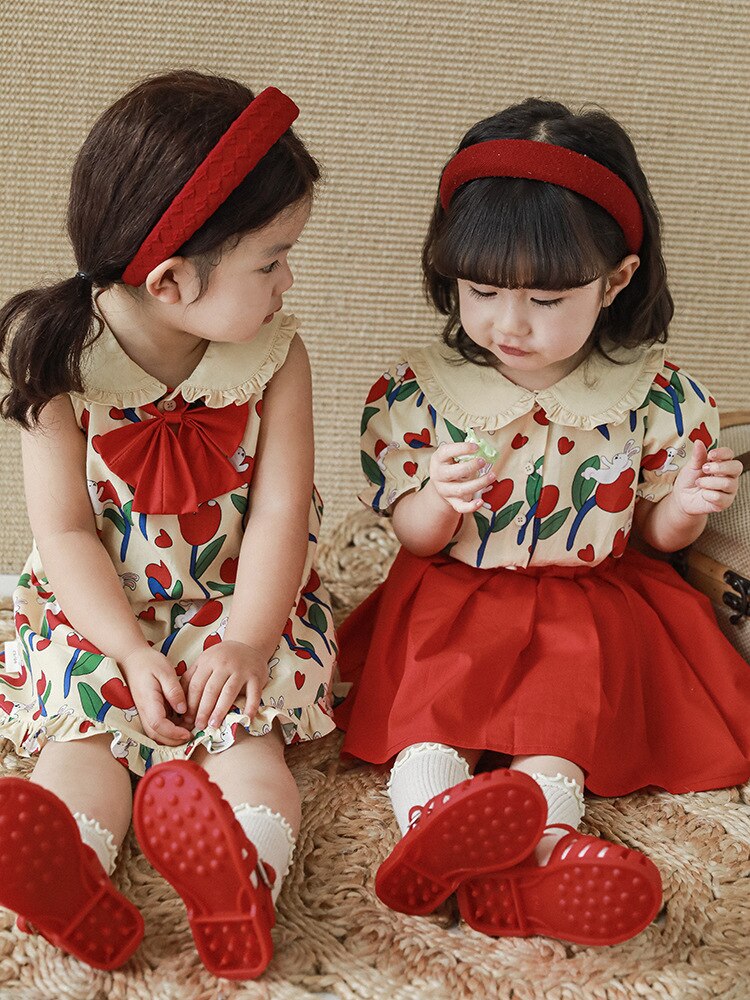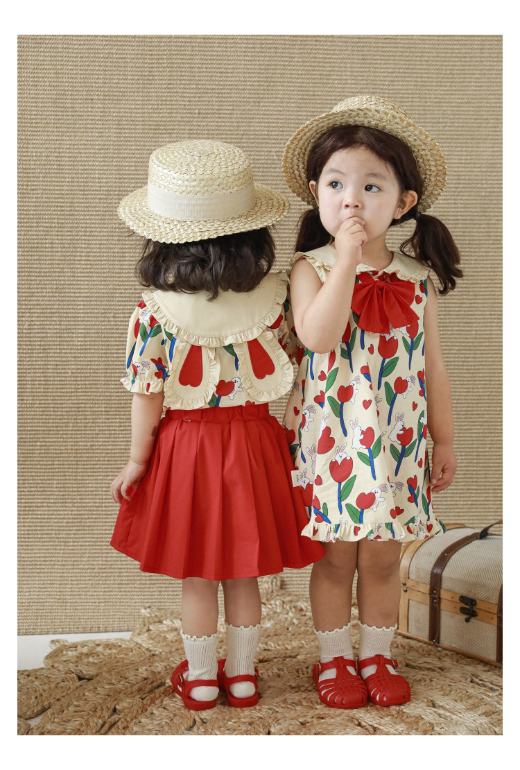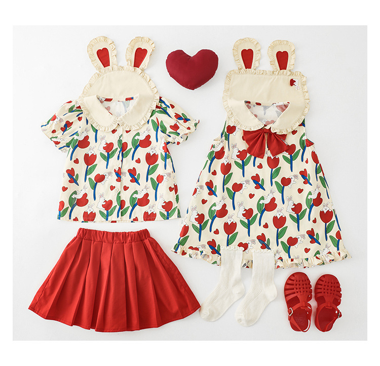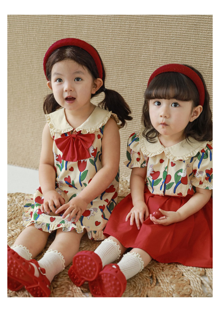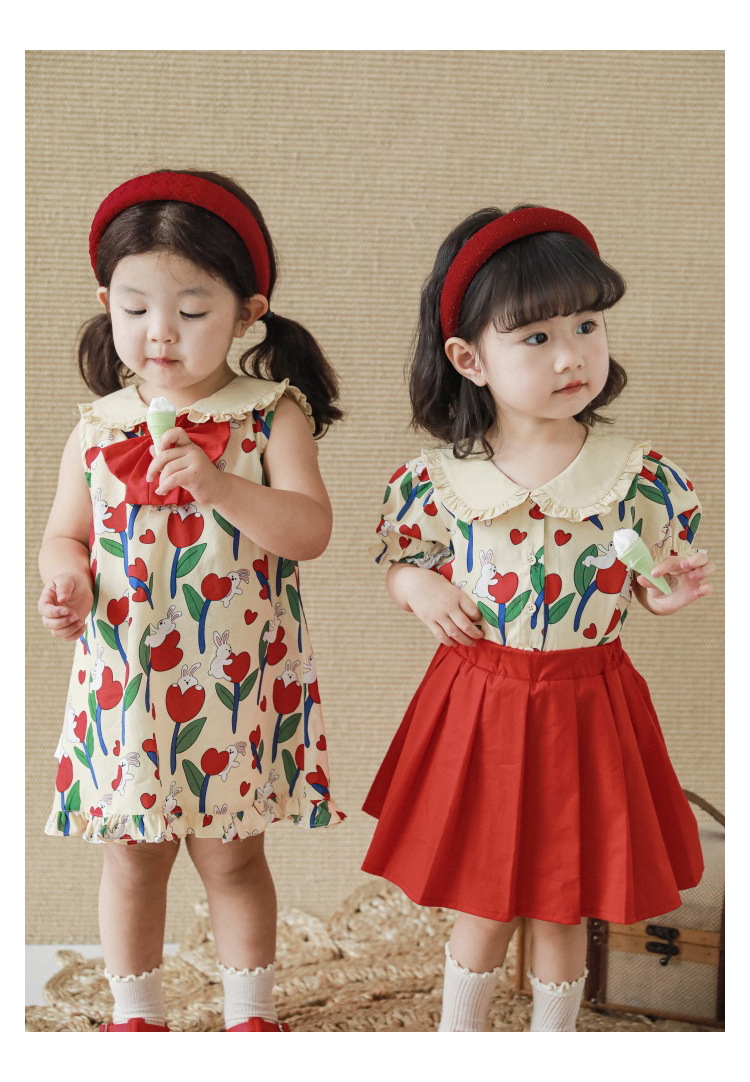 Комплект рубашки с отворотом для девочек, 2023, новый детский пасторальный стиль, летние детские удобные платья из чистого хлопка с бантом и цветочным принтом