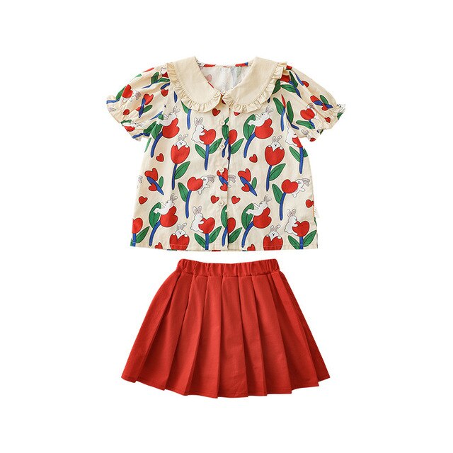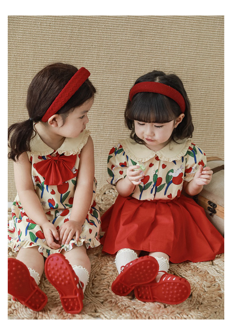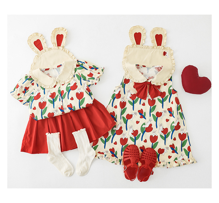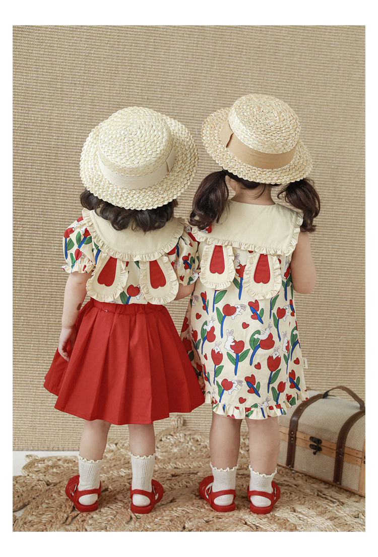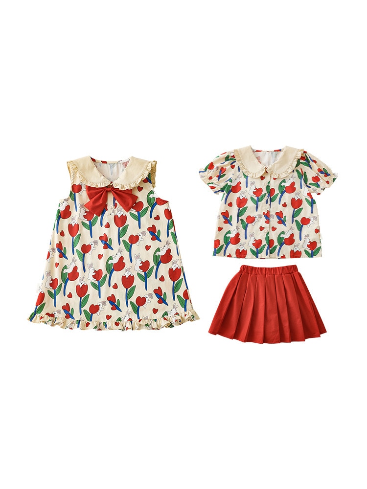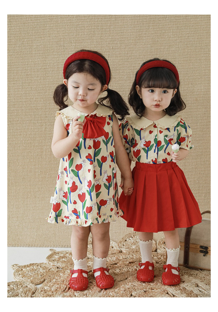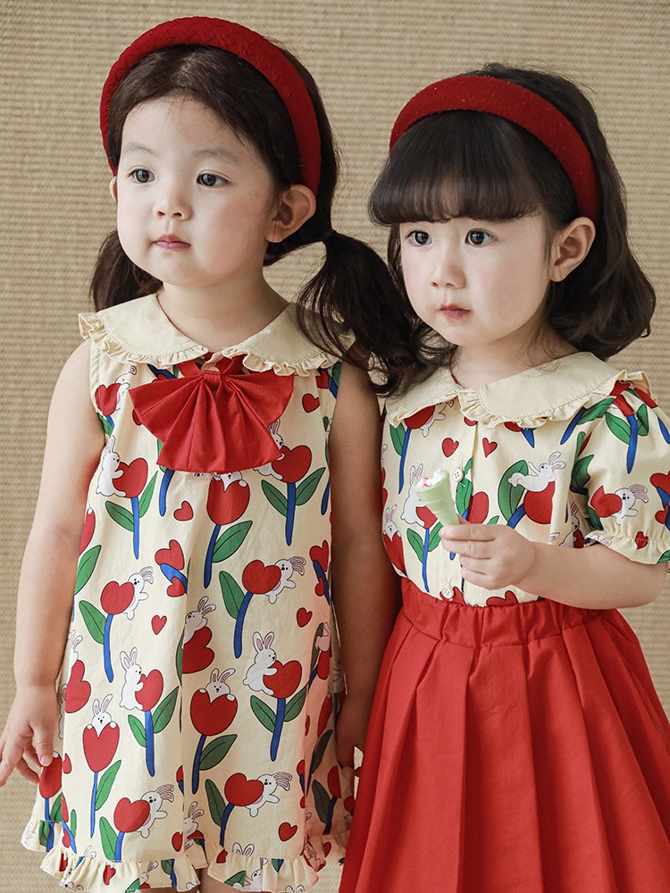 Комплект рубашки с отворотом для девочек, 2023, новый детский пасторальный стиль, летние детские удобные платья из чистого хлопка с бантом и цветочным принтом