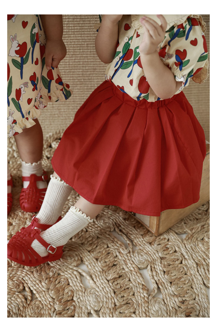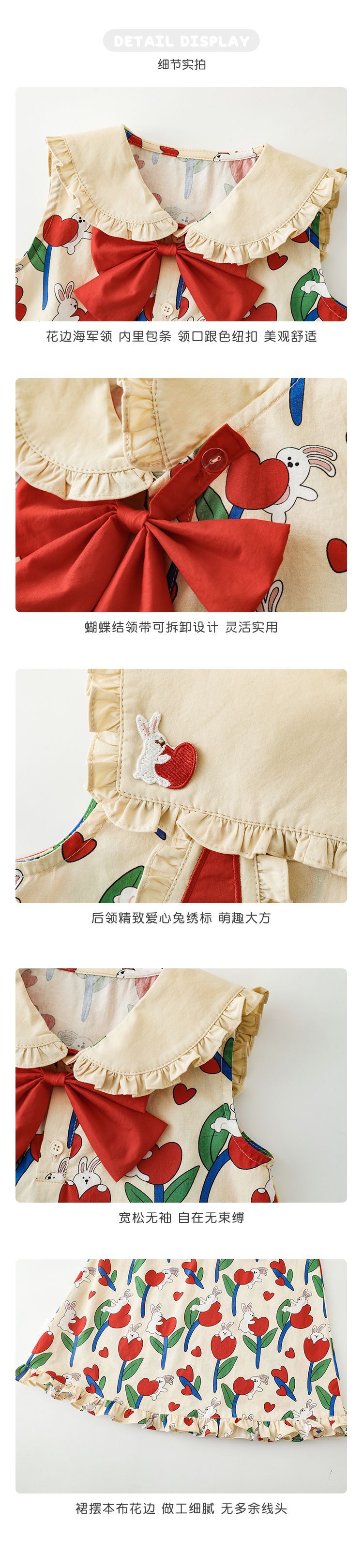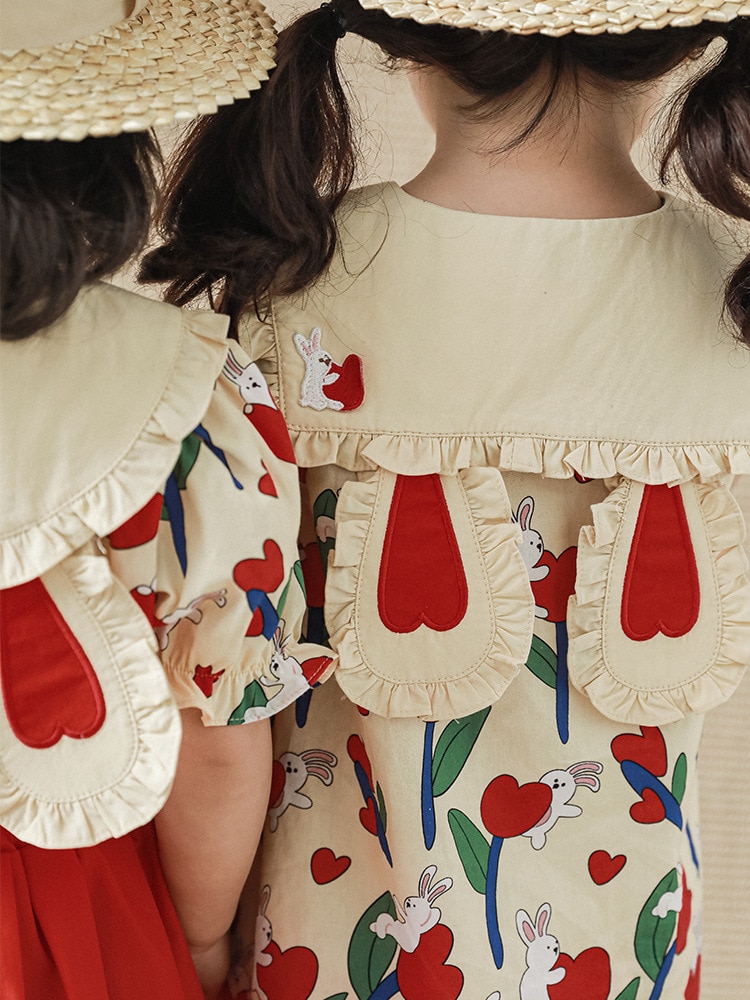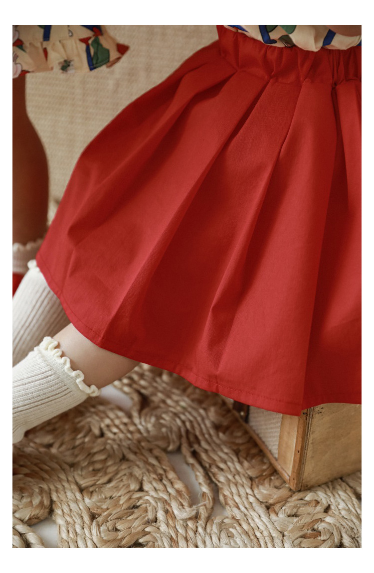 Рубашка-юбка с отложным воротником и мультяшным принтом для девочек, новинка 2023, детское летнее платье в пасторальном стиле для малышей из чистого хлопка с удобным принтом и бантом и цветами