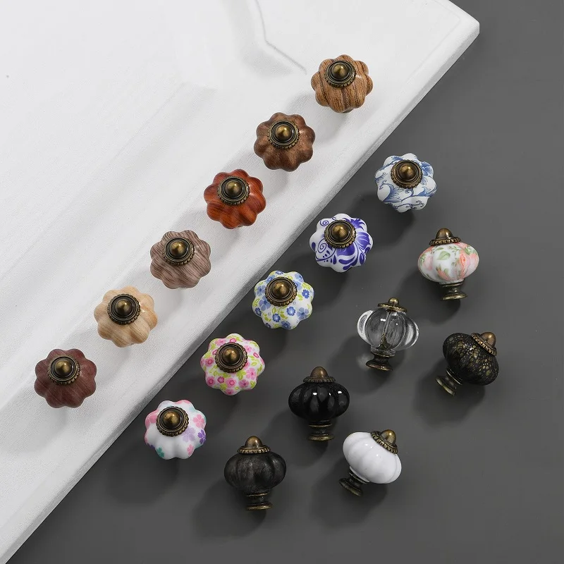 Ручка для мебели в стиле ретро, дверные ручки, ручка для шкафа в форме тыквы керамические ручки для шкафов, ручка для ящика мебели, кухонного шкафа
