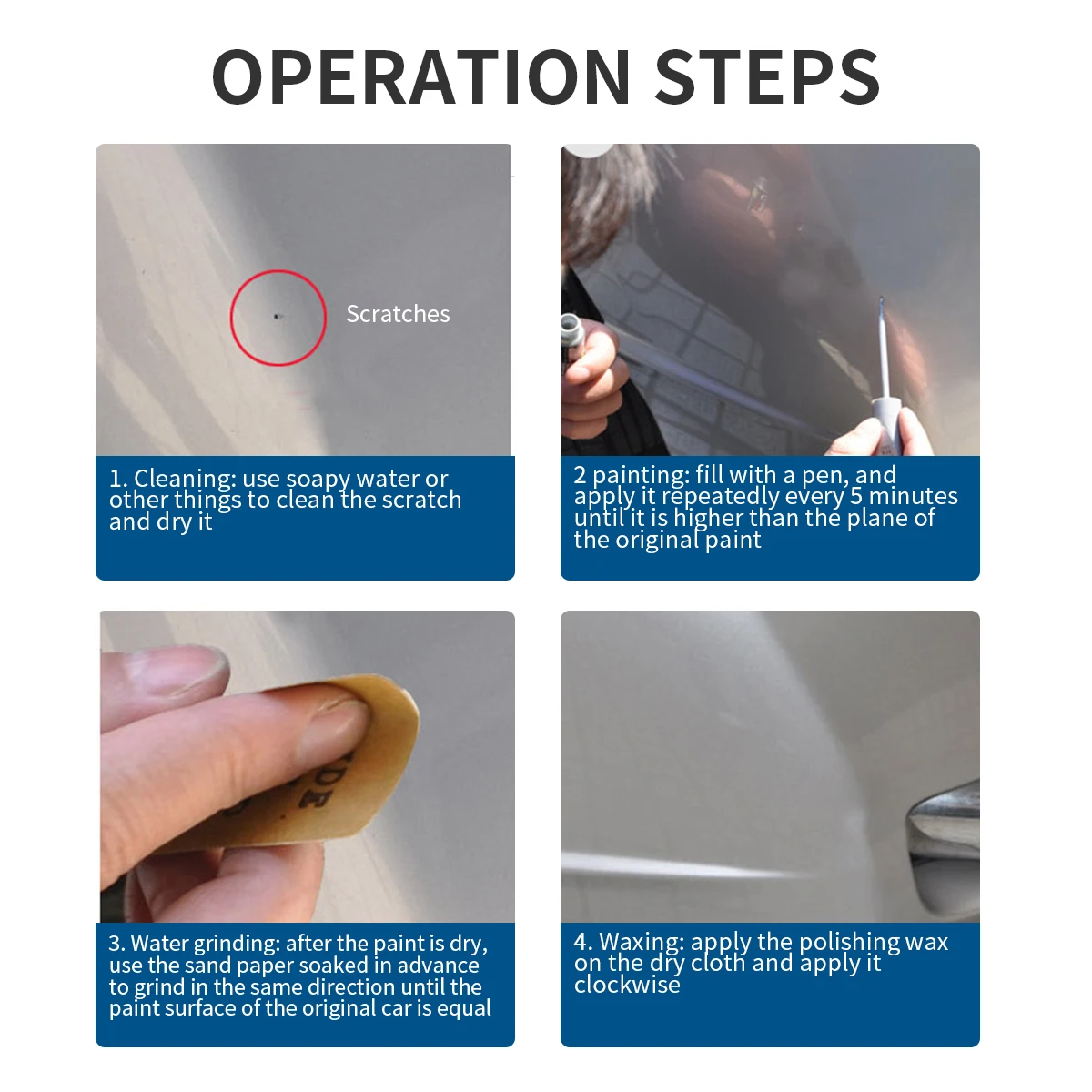 • 【Durable】: после того, как светильник будет шлифован на поверхности краски, поверхность краски будет более блестящей, а разница в цвете между отремонтированной частью и оригинальной автомобильной краской будет согласована, И Отремонтированная поверхность краски будет более естественной