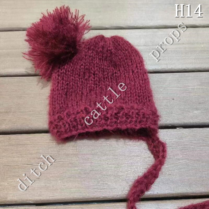 Ручная вязка мохеровая шапочка, реквизит для фотосъемки новорожденных