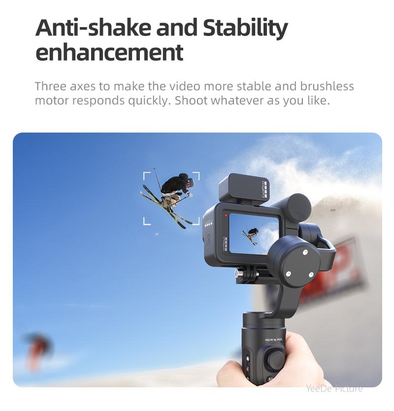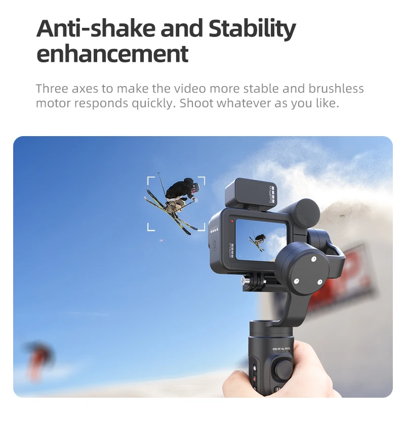 Защита от сотрясения и повышение стабильности: 3 оси, чтобы сделать видео более стабильным, а бесщеточный двигатель быстро реагирует, независимо от ежедневного видеоблога или спортивного движения, стабилизатор может гарантировать вам плавную съемку, как всегда.