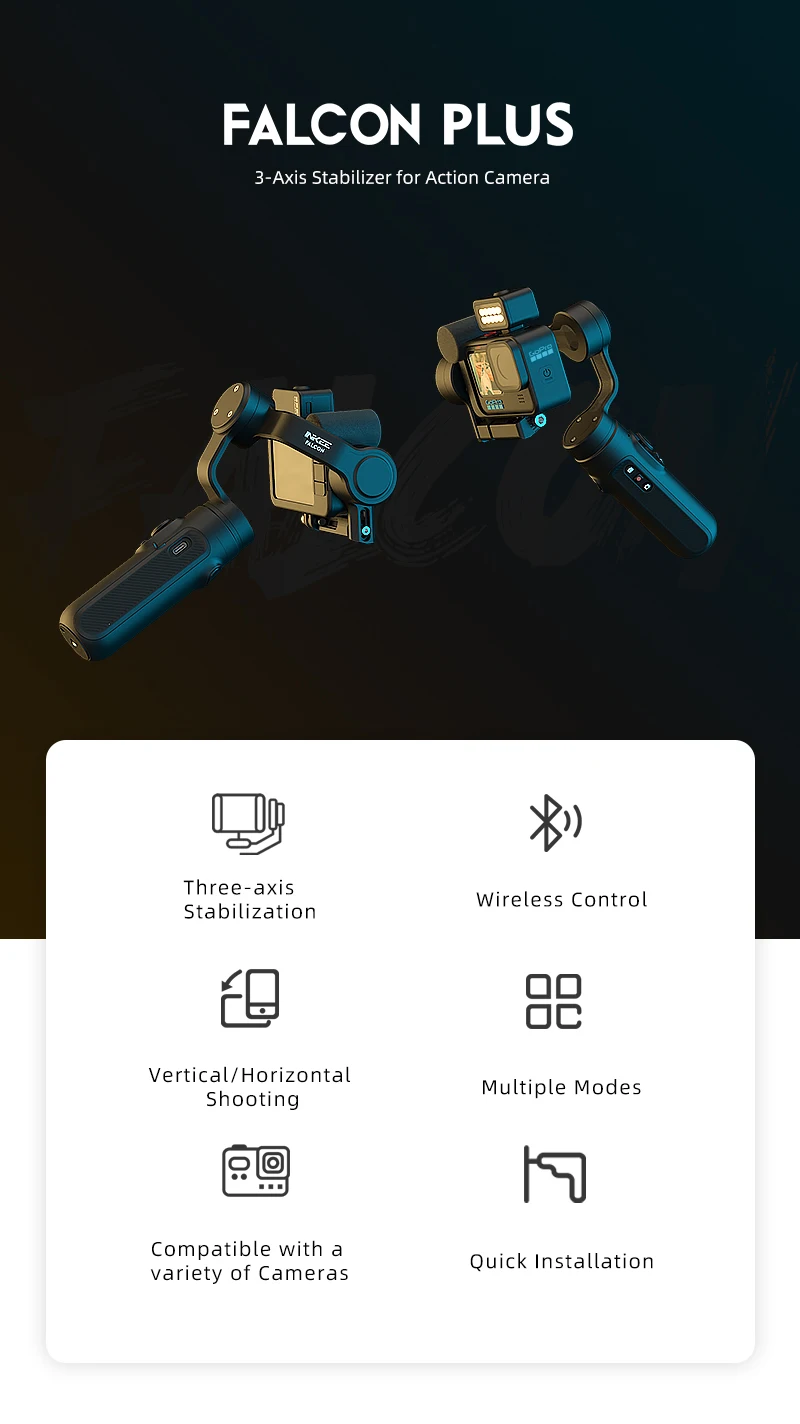 Ручной 3-осевой стабилизатор для экшн-камеры INKEE FALCON Plus, стабилизатор стабилизатора, беспроводное управление для GoPro Hero 11/10 OSMO Insta360