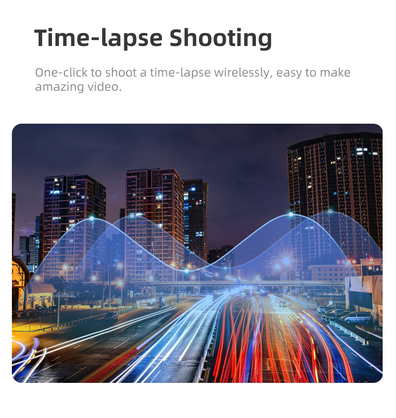 Различные режимы работы соответствуют вашим потребностям в создании: стабилизатор может управлять беспроводной съемкой камеры через беспроводное соединение BT и поддерживает покадровую съемку, фонарик, вертикальную/горизонтальную съемку, панорамирование, следующие режимы панорамирования и наклона и полный следующие режимы. Наслаждайтесь удовольствием от бесплатного создания.