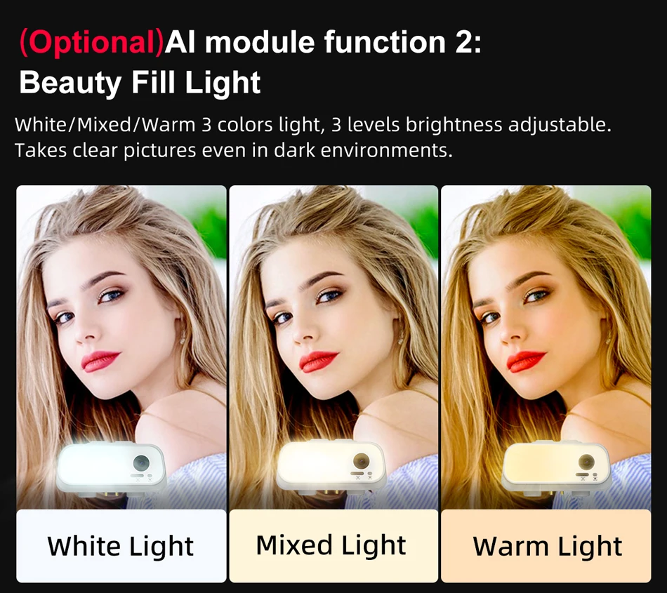 4. Модуль AI также имеет функцию заполняющего света (3 цвета, 3 регулируемой яркости), а модулем AI можно управлять жестами.