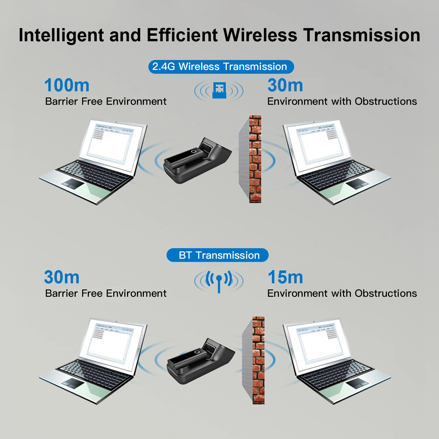 2,4G расстояние беспроводной передачи: 100 метров (открытый), 30 метров (внутренний)