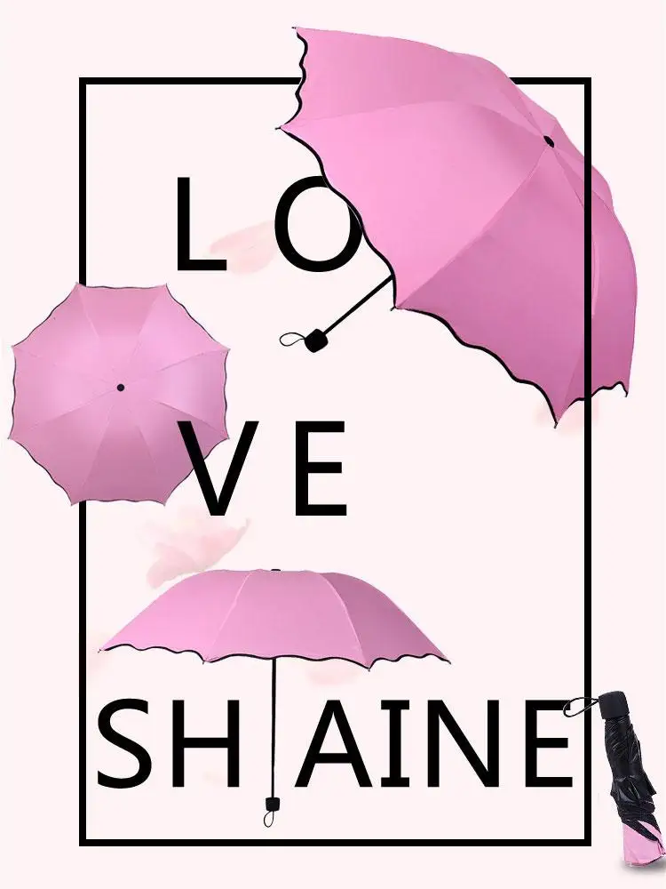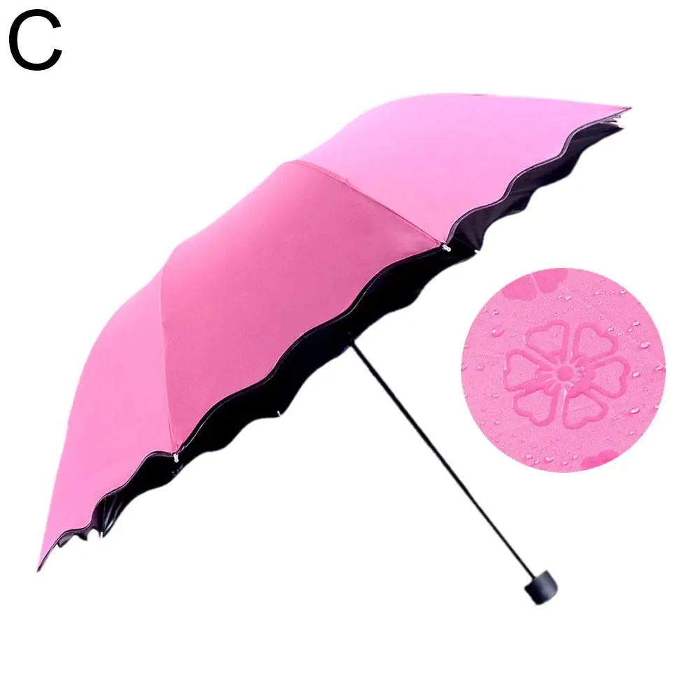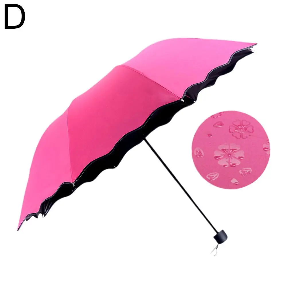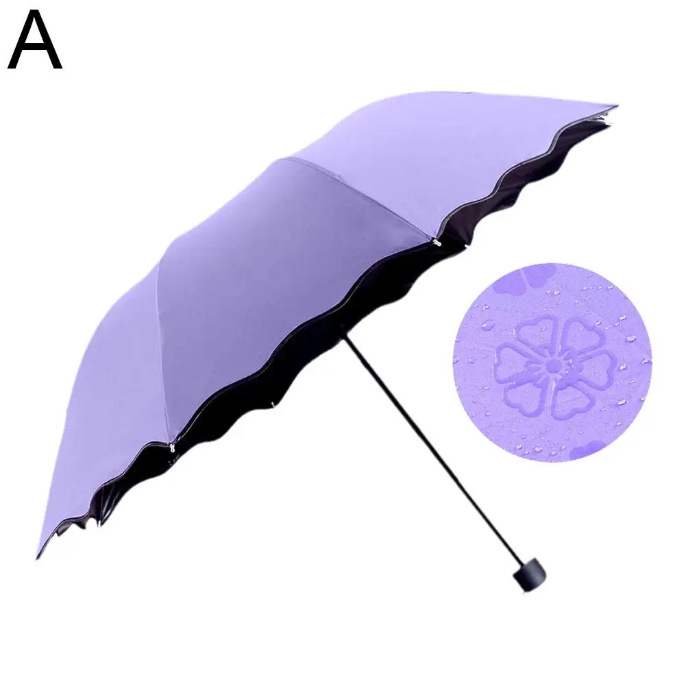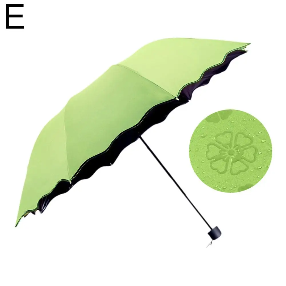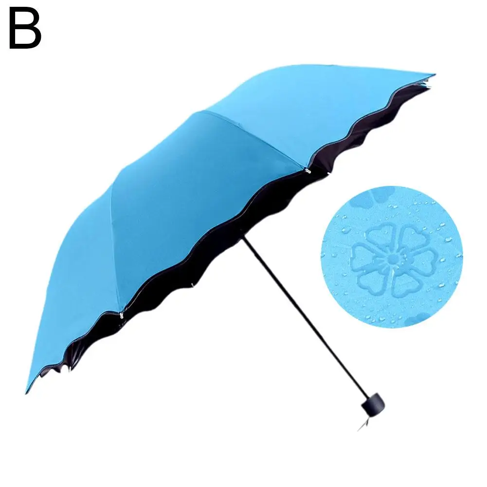 Ручной складной зонт с узором воды для женщин солнечные и дождливые УФ-зонтики тройного сложения зонты с оборками для девушек и женщин зонтик от солнца E8C4