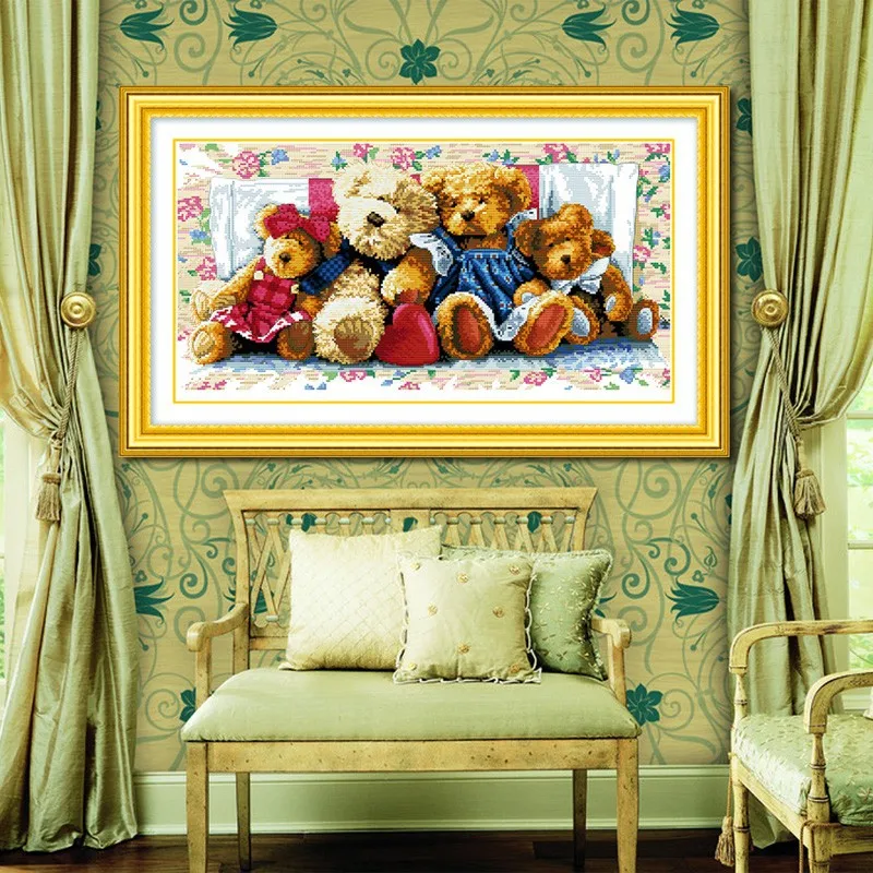 Рукоделие, наборы для вышивки крестом, наборы для самостоятельной вышивки, картины «Семья медведей», Счетный крест, рождественское искусство