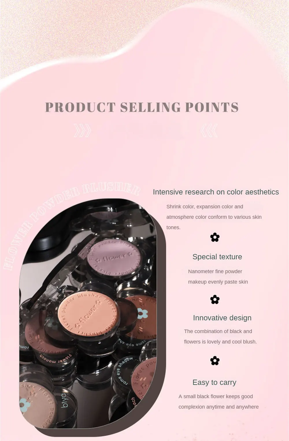 1. Румяна порошка: Добавьте касание яркого цвета, исследуйте наши различные высокие варианты румян порошка пигмента, выделите скулы, и Создайте естественный и здоровый блеск.