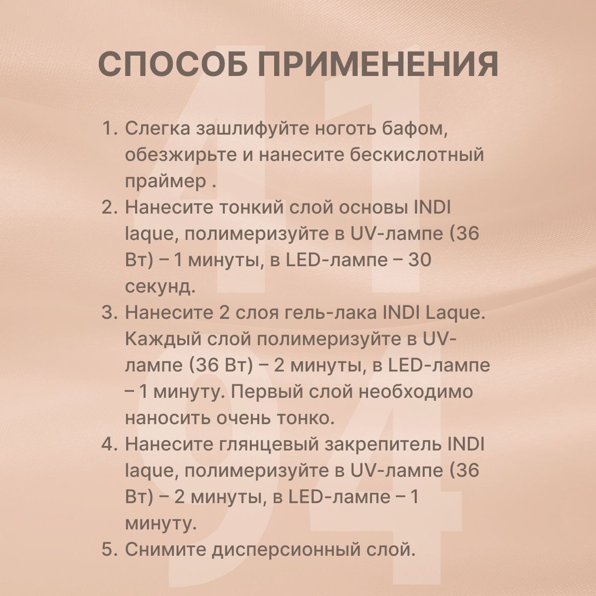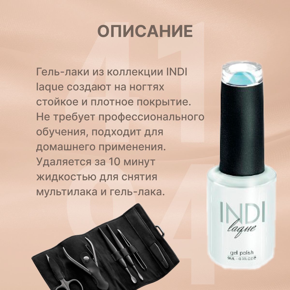Гель-лаки из серии INDI созданы для тех, кто любит экспериментировать. Совместимы со всеми базовыми и топовыми покрытиями для гель-лака: Laque, VitaBase, Shaper, Lasting gel.