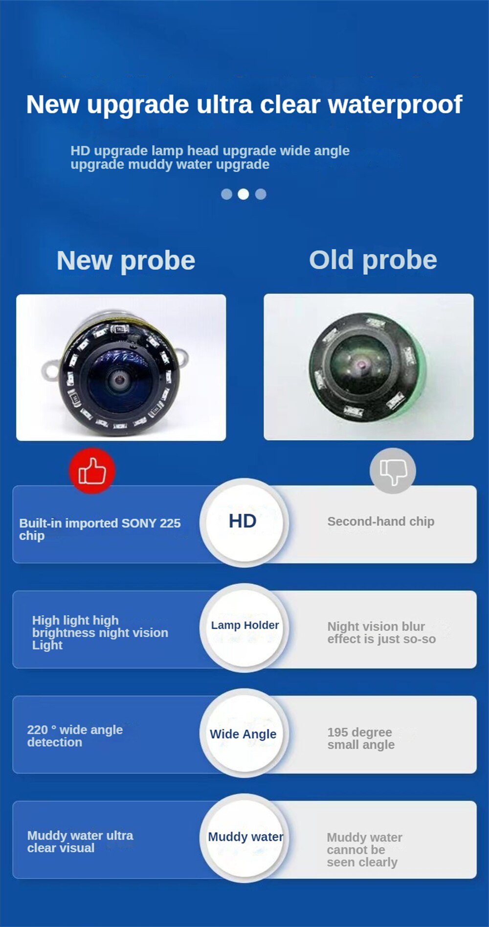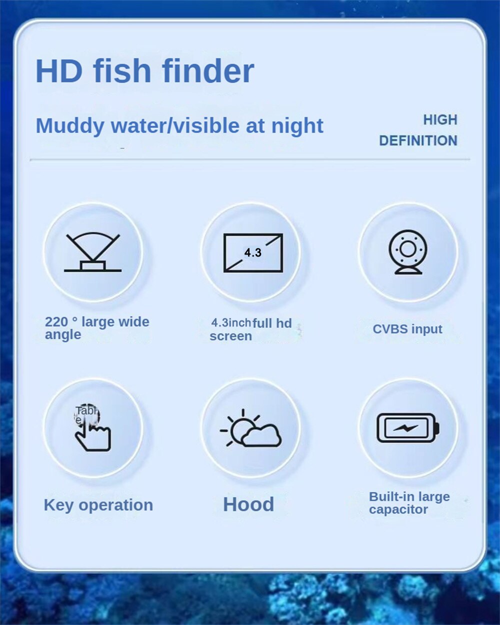 • Подводная камера для рыбалки 220 *:Эта камера-эхолот разработана, чтобы выдерживать суровые Подводные условия, что делает ее идеальной для любителей рыбалки.