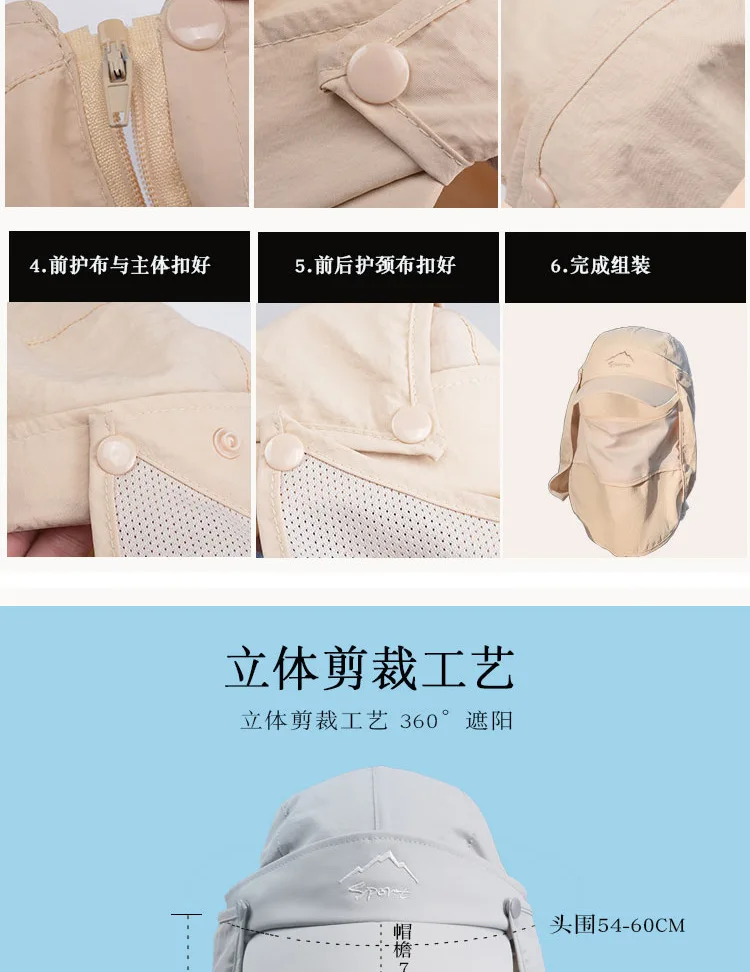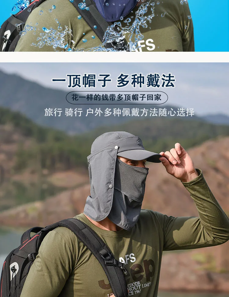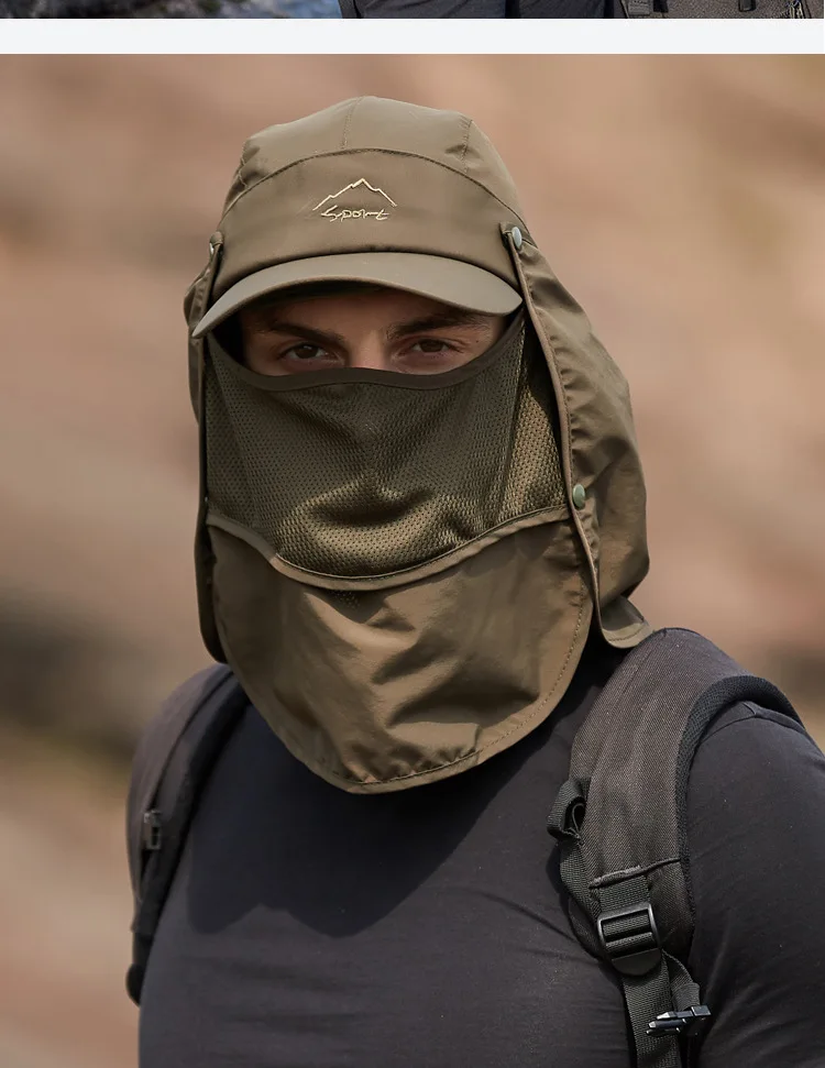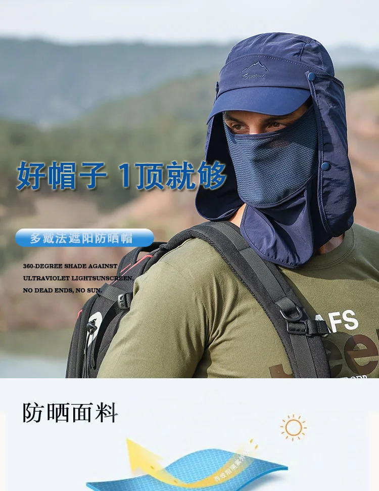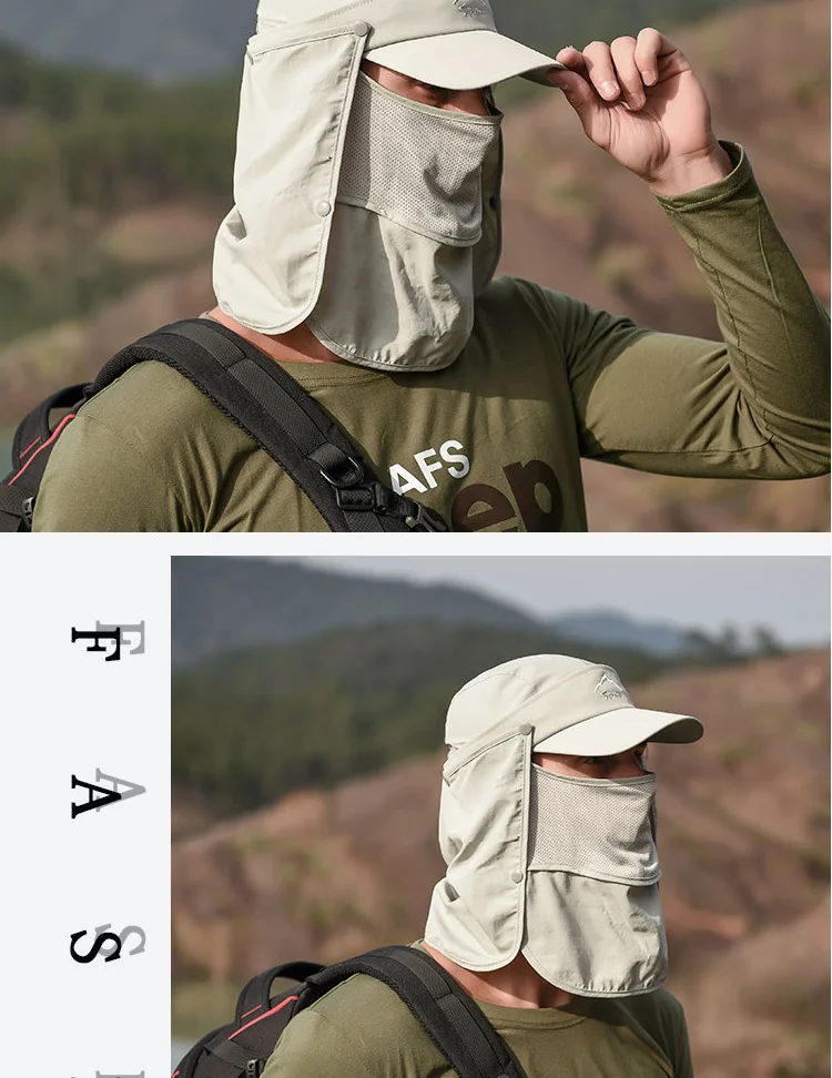 • Защита от солнца на 360 °: шляпы с клапаном Sun Cap UPF 50 + защита от солнца, чтобы сохранить нежную кожу на шее, ушах и лице от вредных лучей, все в окружении большой шали, бесплатное удаление, солнцезащитный и дышащий. В дополнение к съемному клапану на шею и дышащему защитному кожуху для лица, он защищает кожу от непогоды, а маска может защитить лицо от пыли. Новая солнцезащитная Кепка со съемными клапанами