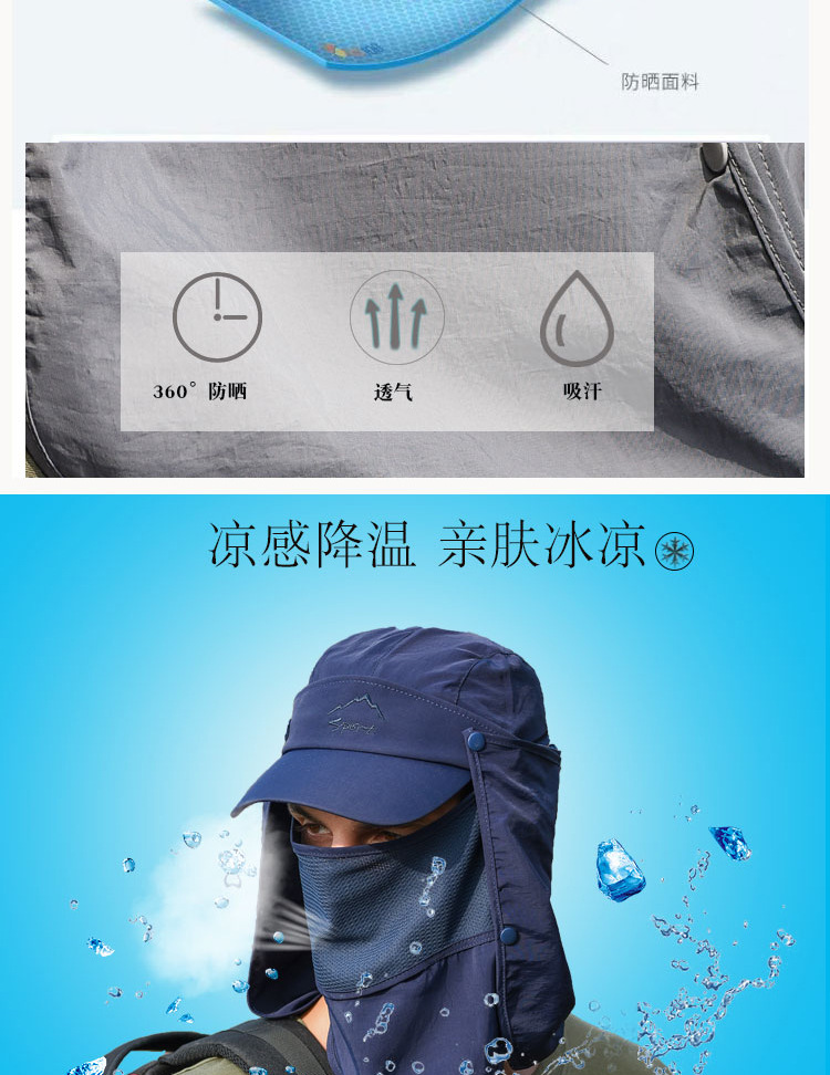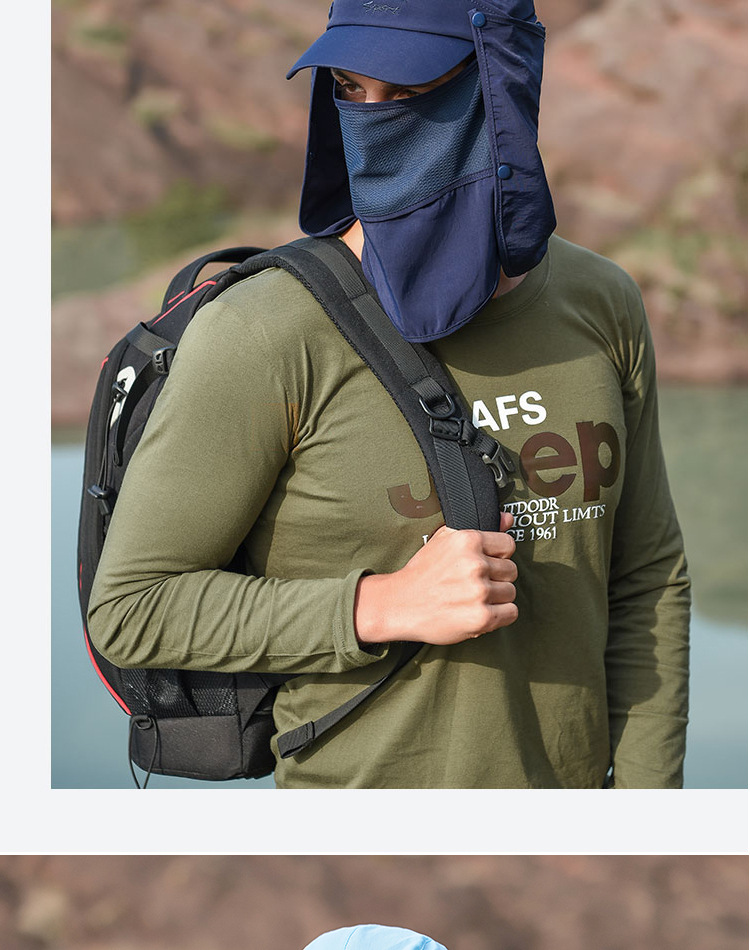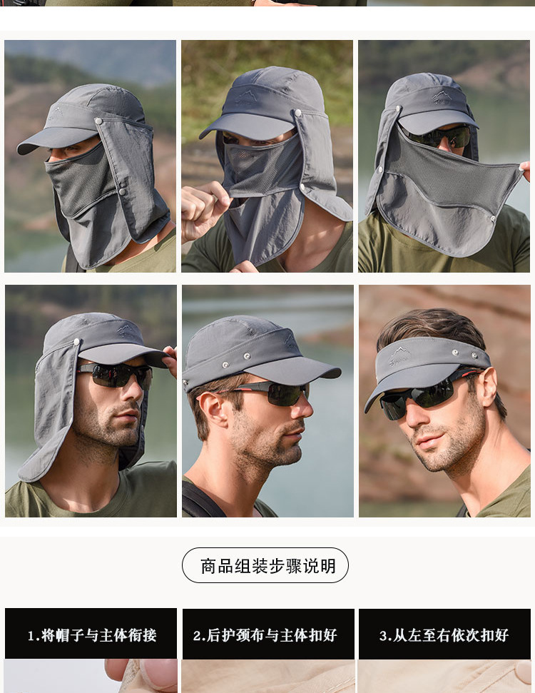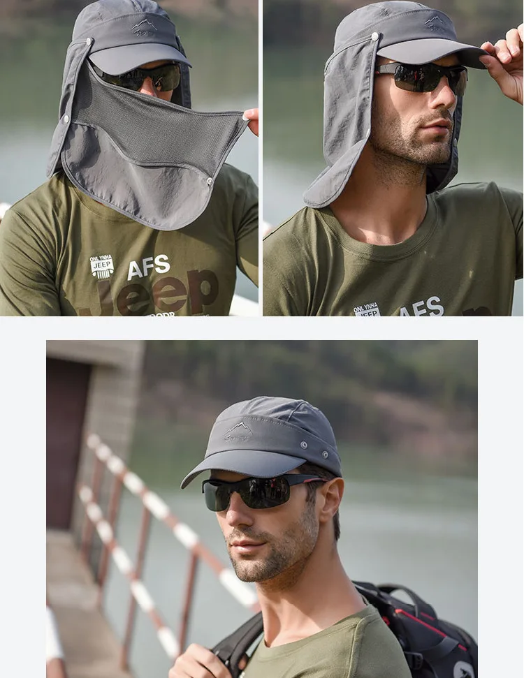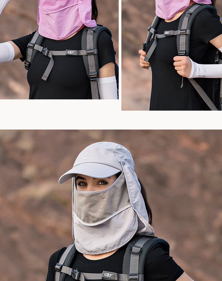 • Защита от солнца на 360 °: шляпы с клапаном Sun Cap UPF 50 + защита от солнца, чтобы сохранить нежную кожу на шее, ушах и лице от вредных лучей, все в окружении большой шали, бесплатное удаление, солнцезащитный и дышащий. В дополнение к съемному клапану на шею и дышащему защитному кожуху для лица, он защищает кожу от непогоды, а маска может защитить лицо от пыли. Новая солнцезащитная Кепка со съемными клапанами