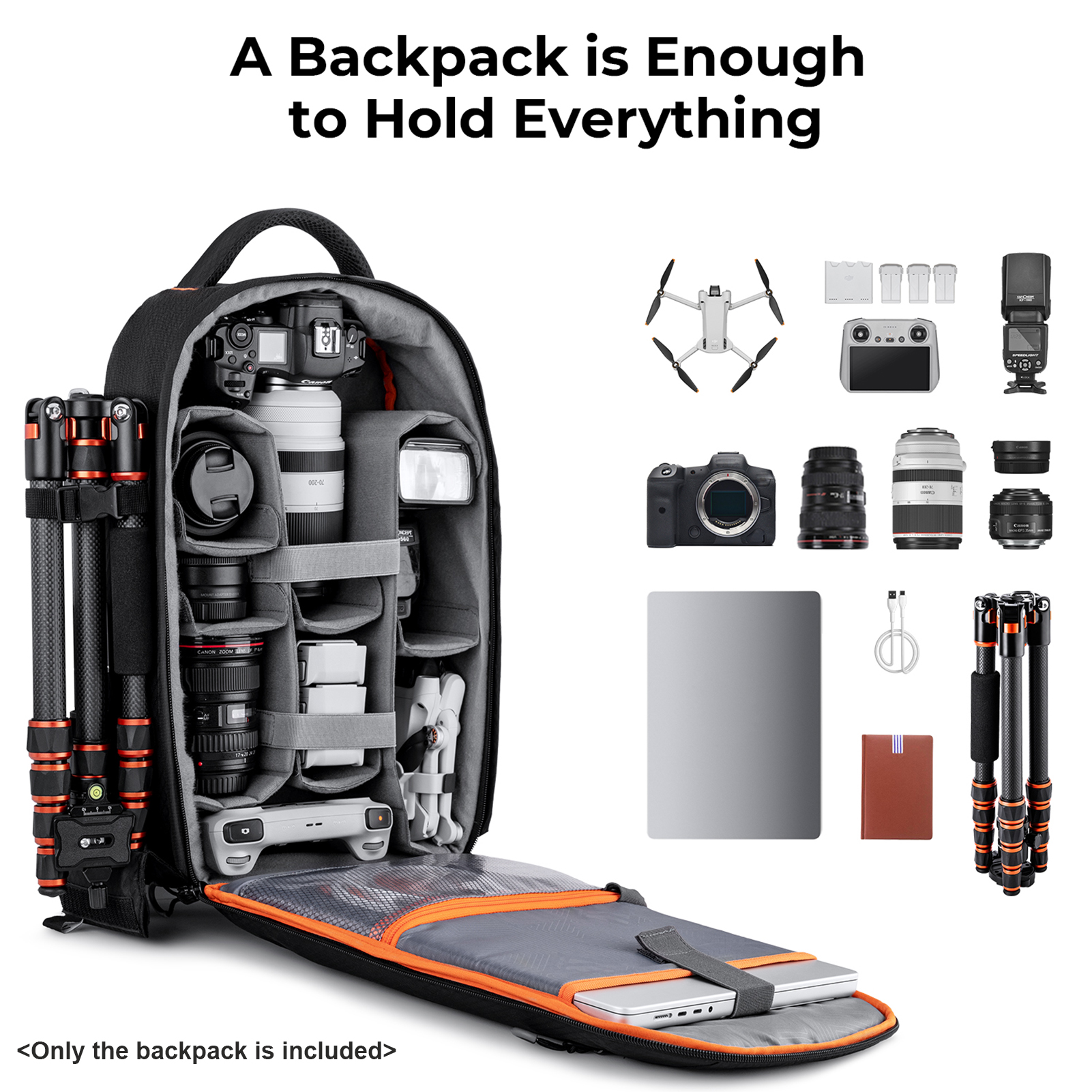 【Рюкзак для камеры большой емкости】 Рюкзак для камеры имеет 10 съемных перегородок, которые можно реорганизовать для размещения различных предметов, таких как цифровая зеркальная камера, беззеркальная камера, объектив камеры, вспышка, стабилизатор, Дрон и т. Д. Большая емкость 18 л, вы можете удобно носить с собой все, что вам нужно для фотосъемки на открытом воздухе.
