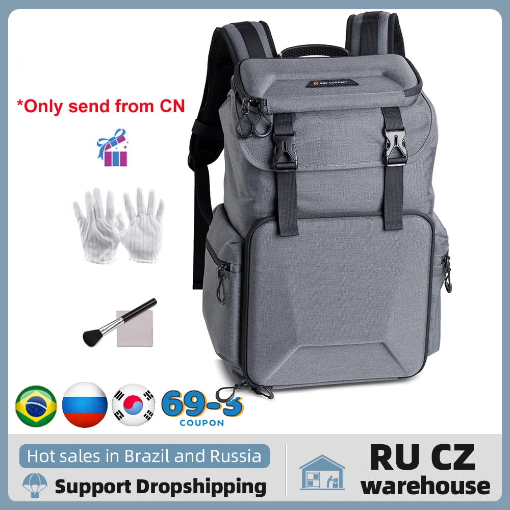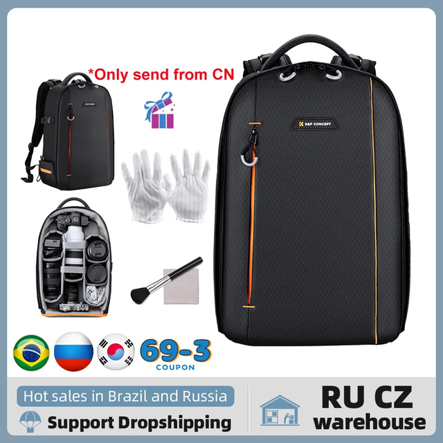 Многофункциональный рюкзак для камеры K & F CONCEPT Водонепроницаемая сумка для камеры 18 л для фотографа, отделение для ноутбука, держатель штатива
