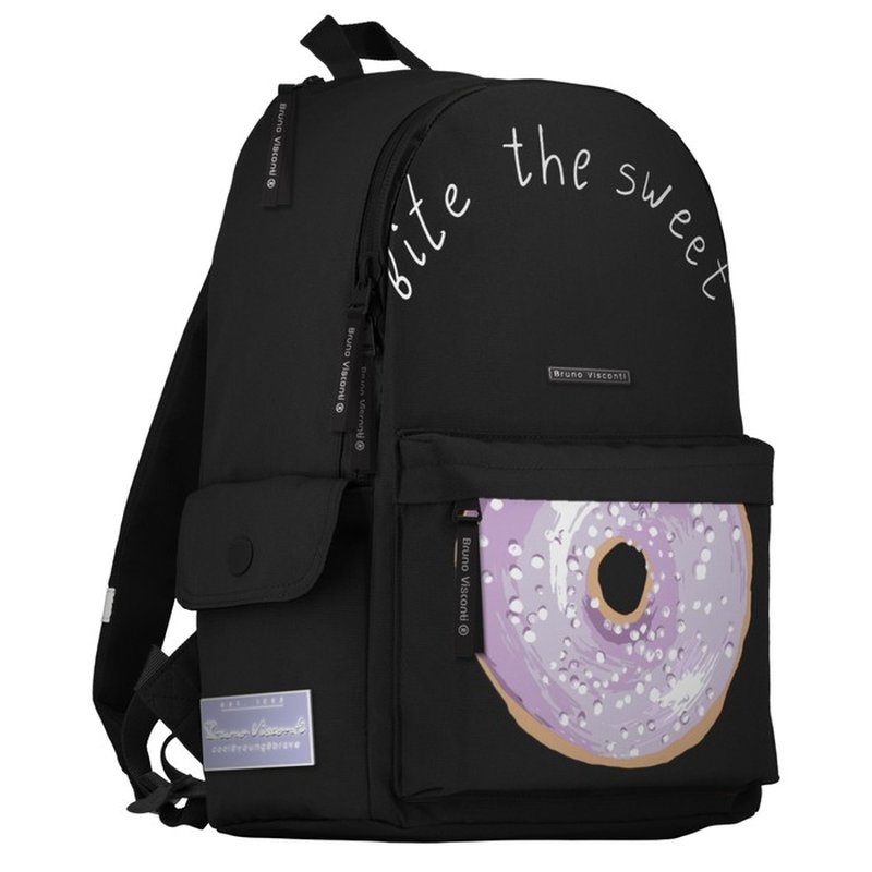 Рюкзак молодежный 40 х 30 х 17 см, Bruno Visconti 12-003 + пенал, DONUT, чёрный