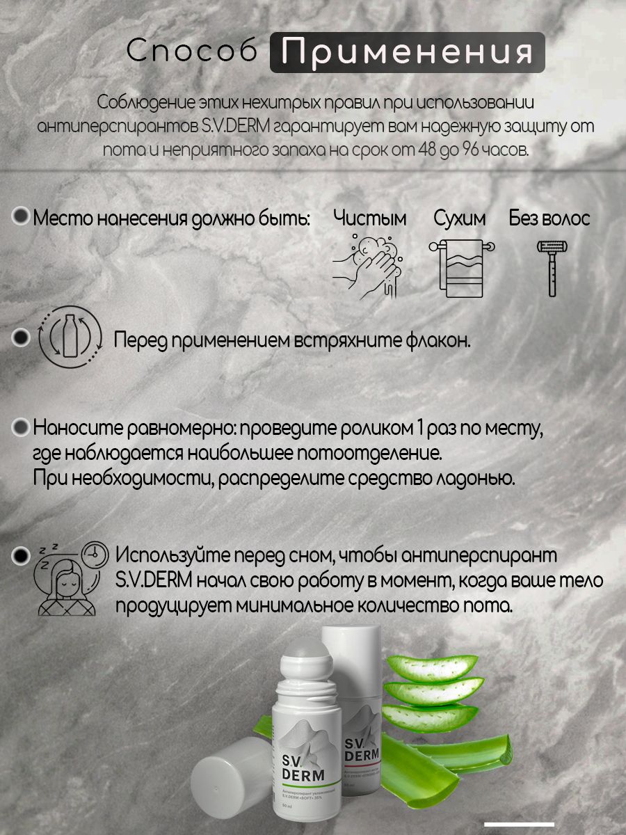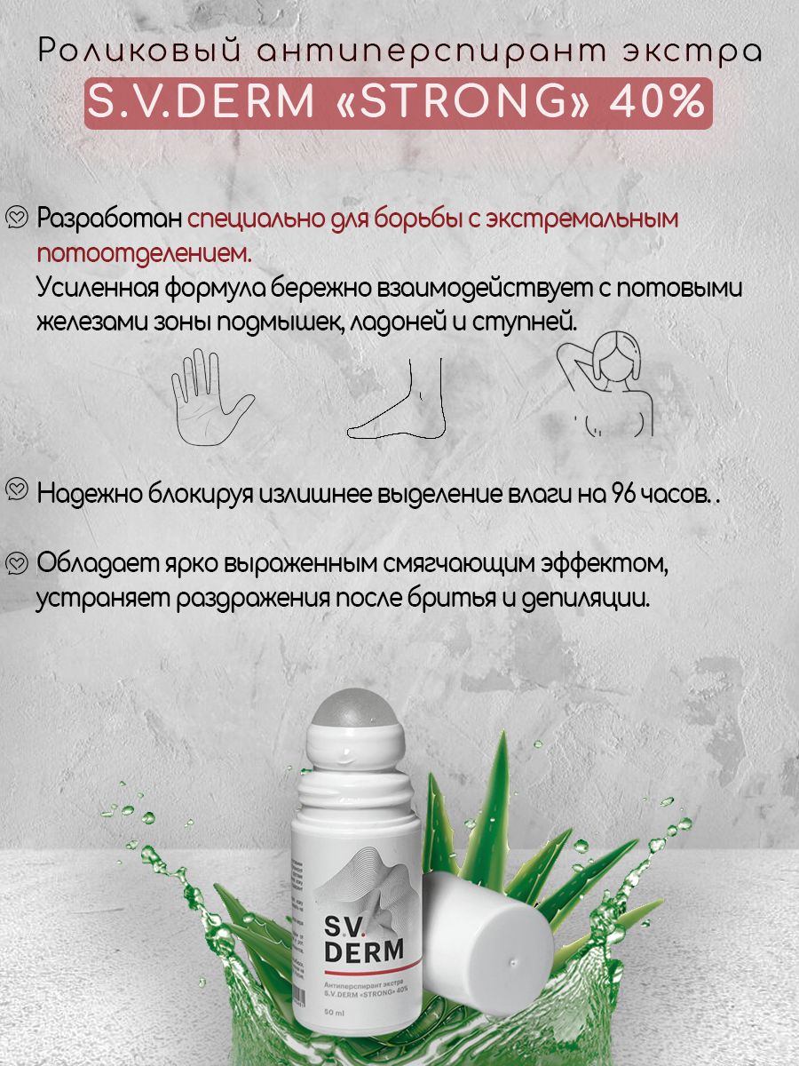 S.V.DERM Strong 40% Антиперспирант/дезодорант для подмышек, рук, ног, с Алоэ Вера и Д-Пантенолом