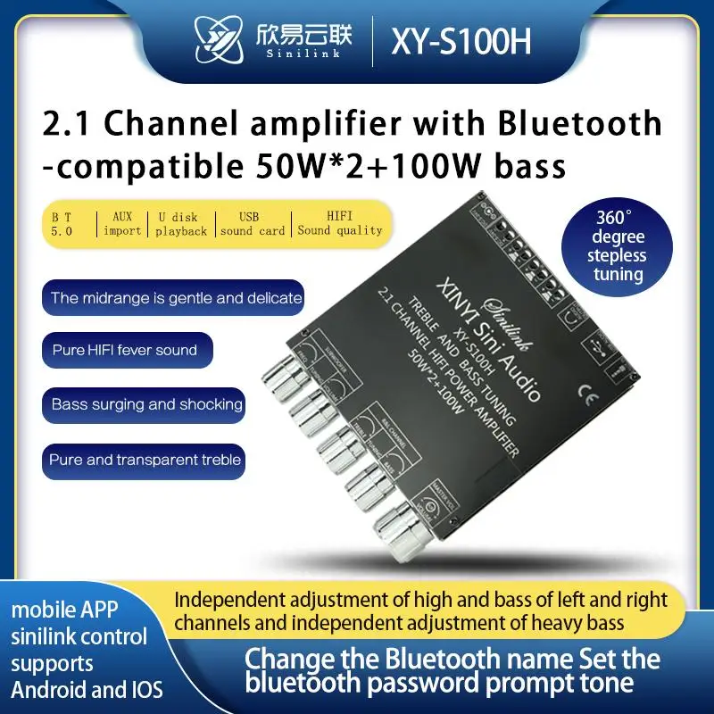 2.1-канальный цифровой усилитель мощности Bluetooth 5.0 50 Вт * 2 + 100 Вт.