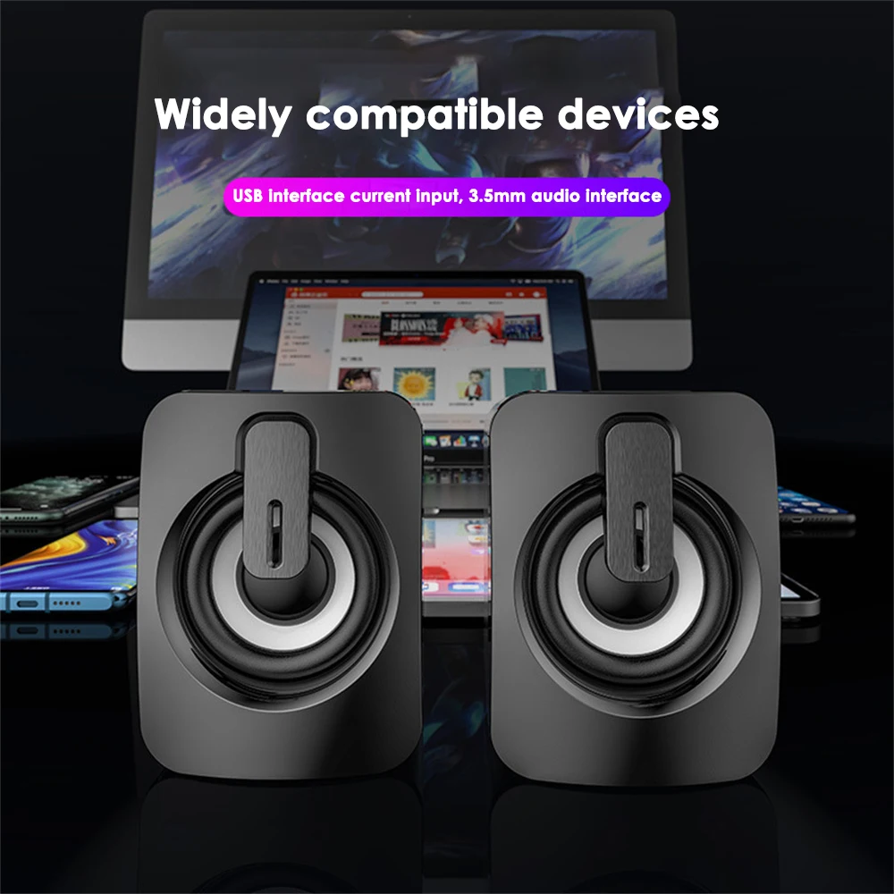 1. Настольная стереосистема Mini RGB, стереозвук с двойным динамиком, небольшой размер, не занимает места на рабочем столе, удобное хранение.