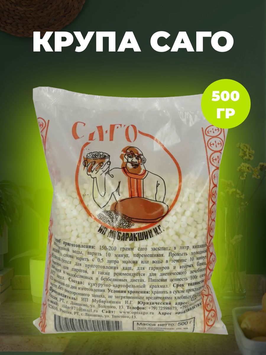 Описание: Саго представляет собой крупу,которую изготавливают из картофельного или кукурузного крахмала. Полезные свойства саго:Полезные свойства саго в первую очередь зависят от того, как оно было произведено. В состав натурального продукта входит клетчатка, которая помогает очищать кишечник от шлаков и токсинов. Саго может похвастаться наличием практически всех минералов, которые необходимы для нормального функционирования организма. Есть в нем разные витамины . Преимущество этой крупы заключается в полном отсутствии глютена, который вызывает у многих людей аллергию. Именно поэтому рекомендуется употреблять саго людям с целиакией (заболевание, провоцирующее сильную аллергию). Этот продукт обладает обволакивающим свойством, что позволяет употреблять его в качестве профилактики от болезней ЖКТ. Саго является прекрасным источником энергии. Многие врачи рекомендуют включить кашу из него в лечебную диету и при истощении. Помогает саго и улучшить аппетит. Содержит этот продукт много холина, который обеспечивает защиту клеточных мембран и улучшает процесс усвоения жира. Еще это вещество благоприятно сказывается на работе нервной системы. Способ приготовления: 150 -200 грамм засыпать в литр кипящей подсоленной воды, варить 10 минут, перемешивая. Промыть холодной водой и снова варить с 0,5 литра молока или воды в течение 10 минут. Используется для приготовления каш, для гарниров и вторых блюд, начинок для ирогов, а также рекомендуется для диетического лечебного питания в малобелковых и безбелковых диетах.Состав: кукурузно-картофельный крахмал. Не содержит глютен. Содержание белка от 0,4 до 0,8 г. на 100 г. продукта в зависимости от партии крахмала. Срок годности 12 мес.