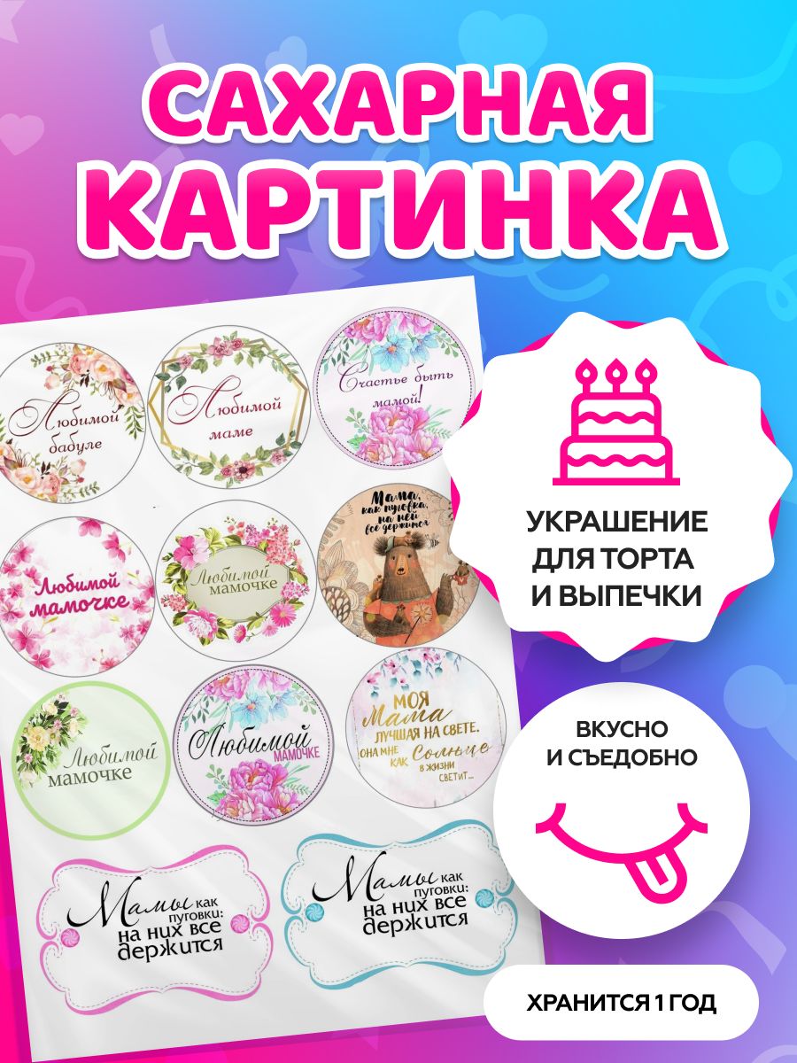 Сахарные картинки для торта маме и бабушке. Декор для торта / съедобная бумага А4