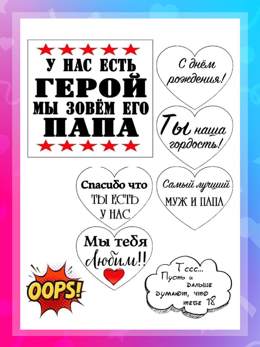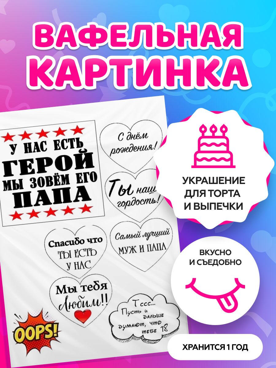 Сахарные картинки для торта на День рождения для мужчин, папе. Декор для торта / съедобная бумага А4