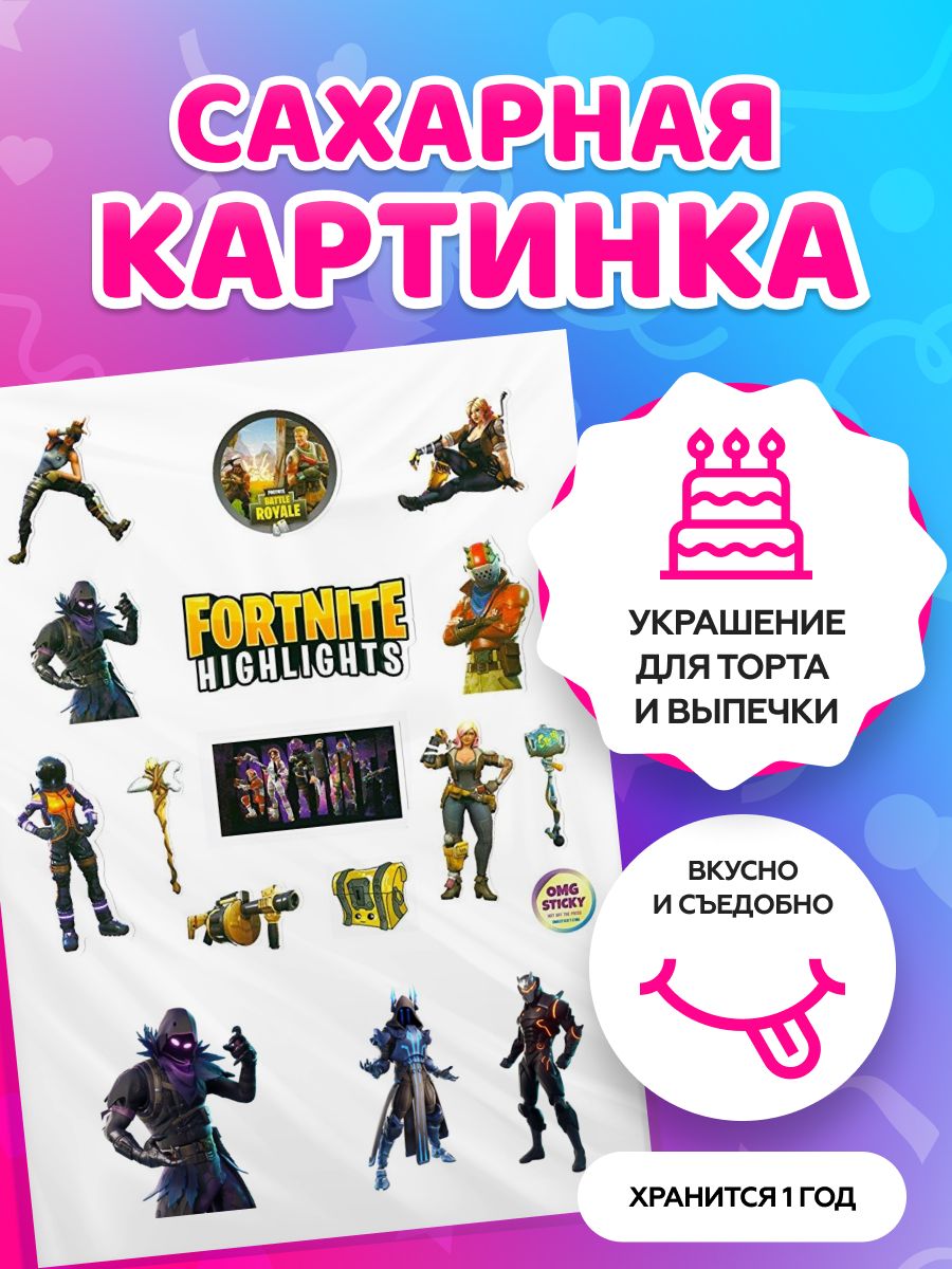 Сахарные картинки на торт Fortnite / Фортнайт. Декор для торта / съедобная бумага А4