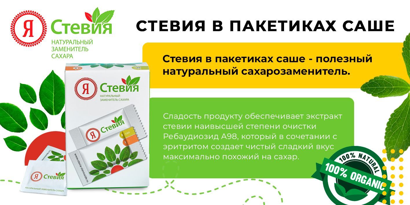 Сахарозаменитель Стевия Саше (1/25), Натуральный подсластитель, порошок