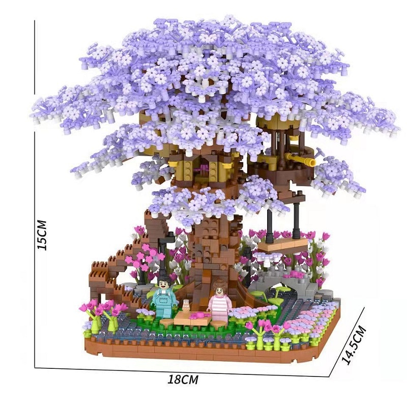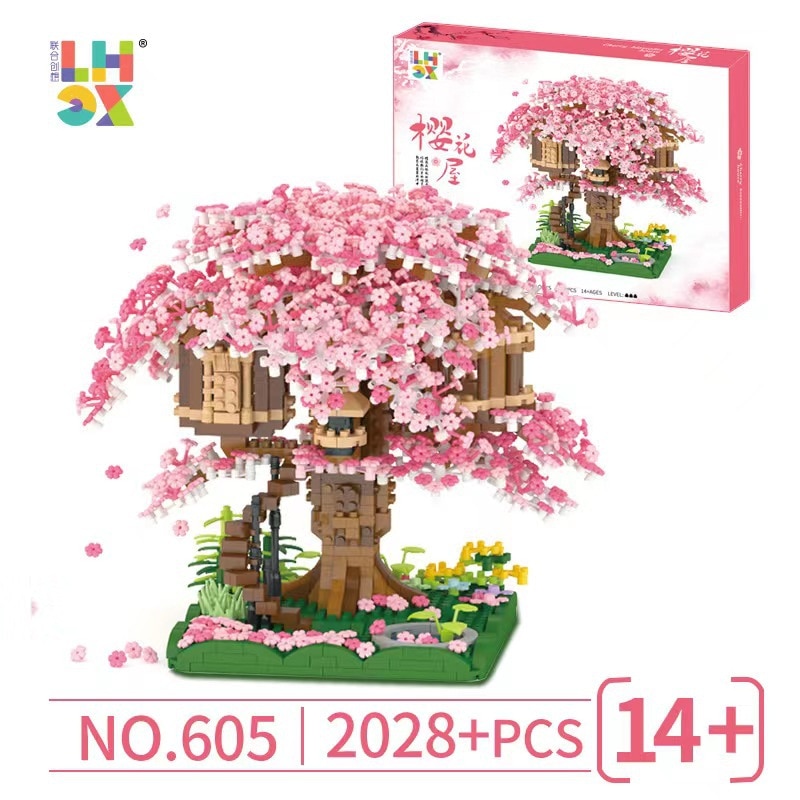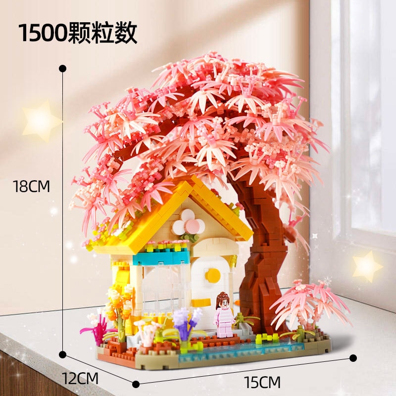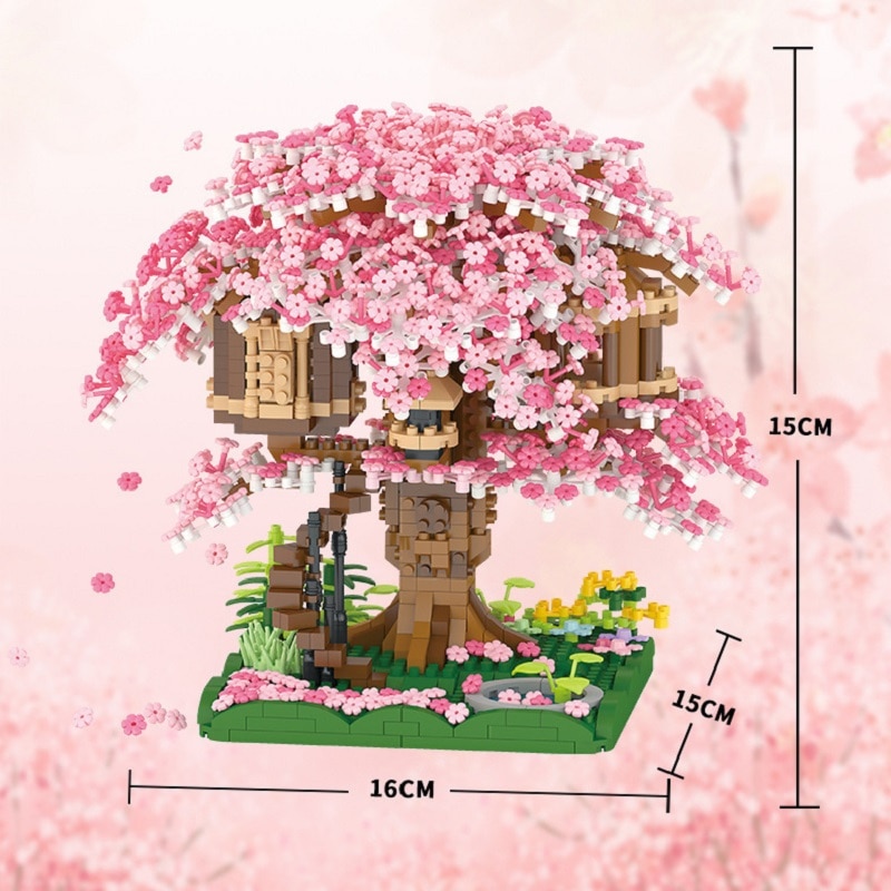 Сакура, дом на дереве, строительный блок, город, улица, вид, цветение вишни, модель, конструктор «сделай сам», игрушки для детей, игрушка для подарка
