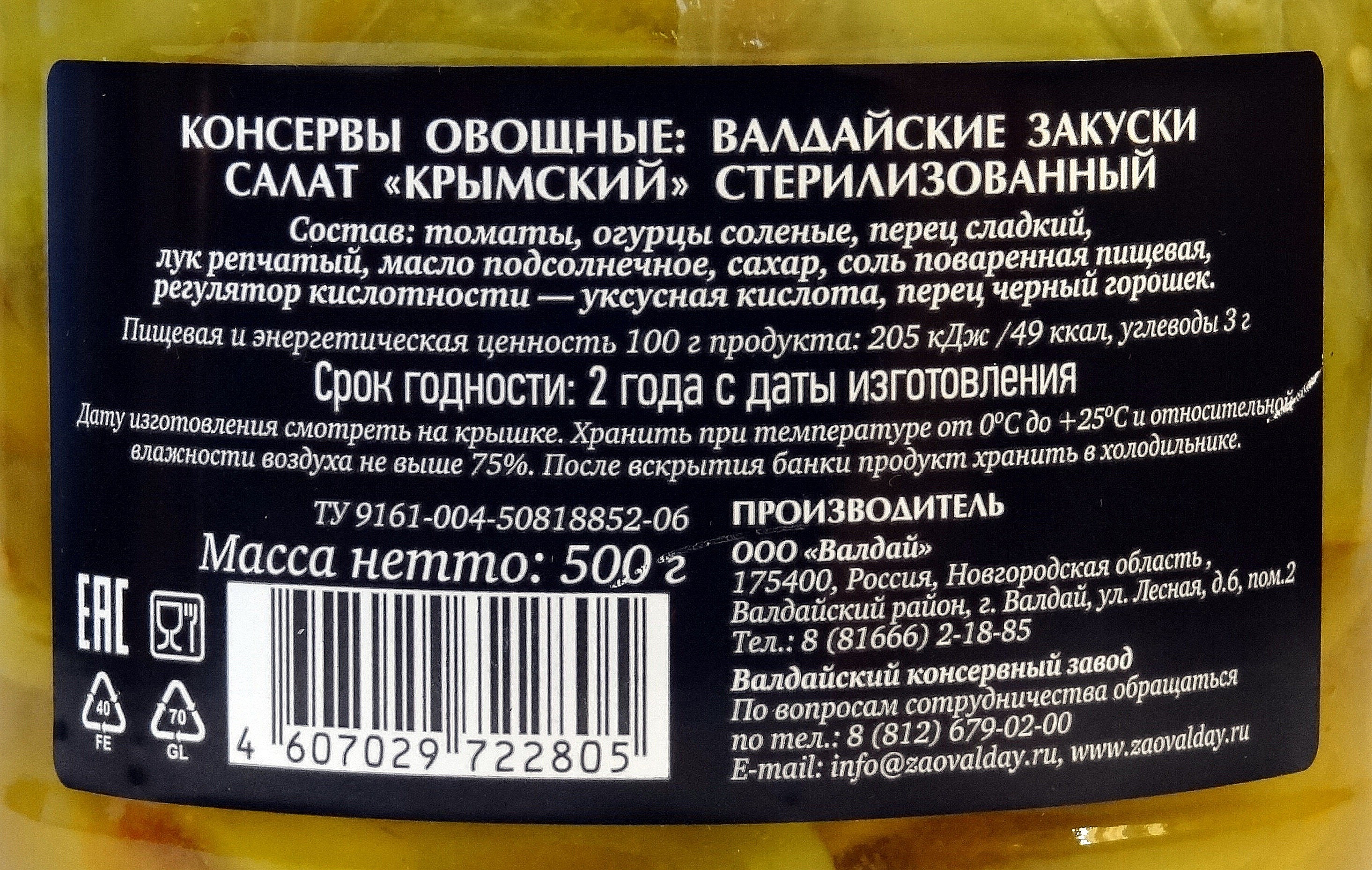 Салат "Крымский" с томатами, солёным огурцом и перцем, 500 мл