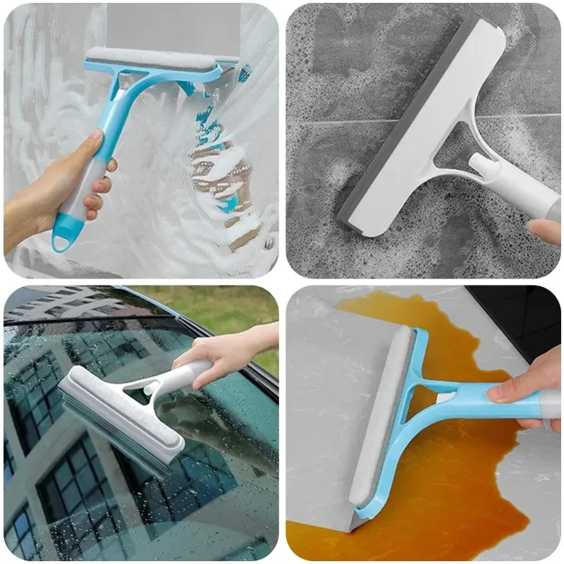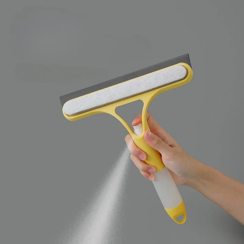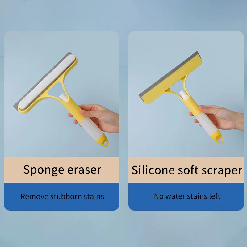 2. Функция «Три в одном»: Силиконовая сторона этой щетки для очистки может соскребать воду со стекла, а сторона губки может протирать стекло; Поставляется с распылителем для удобного использования при мытье окон.