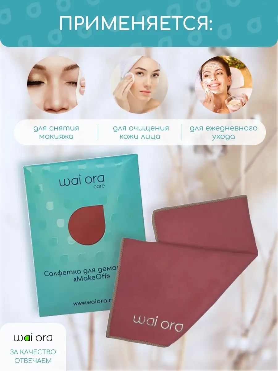 Салфетка для умывания лица / Салфетка косметическая для демакияжа / Средство для умывания MakeOff