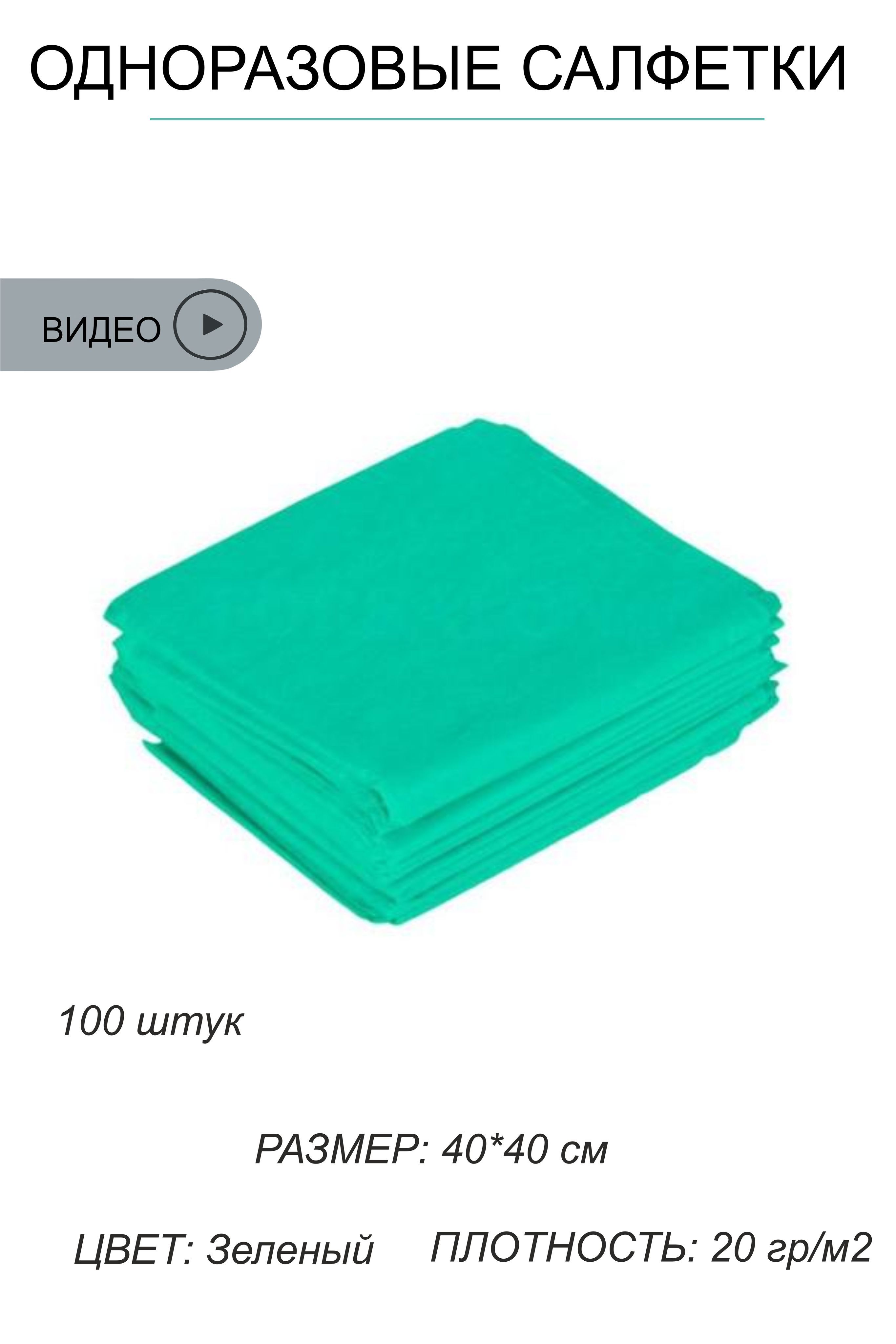 Салфетка зеленая, 40*40 100 шт