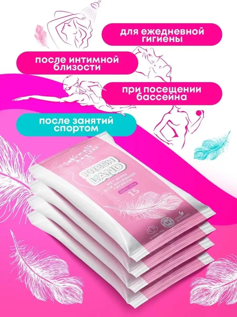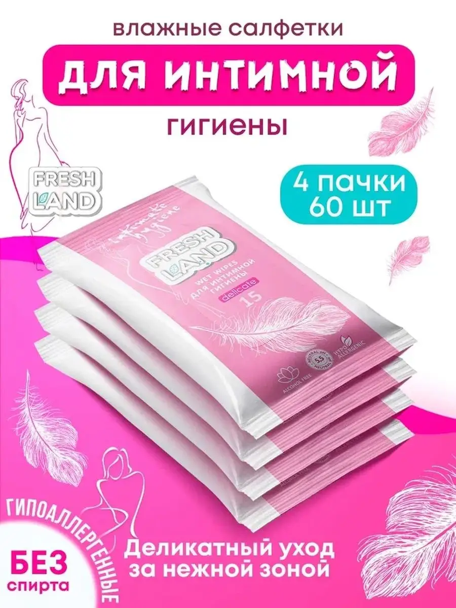 Салфетки для интимной гигиены влажные 4 упаковки по 15 шт.