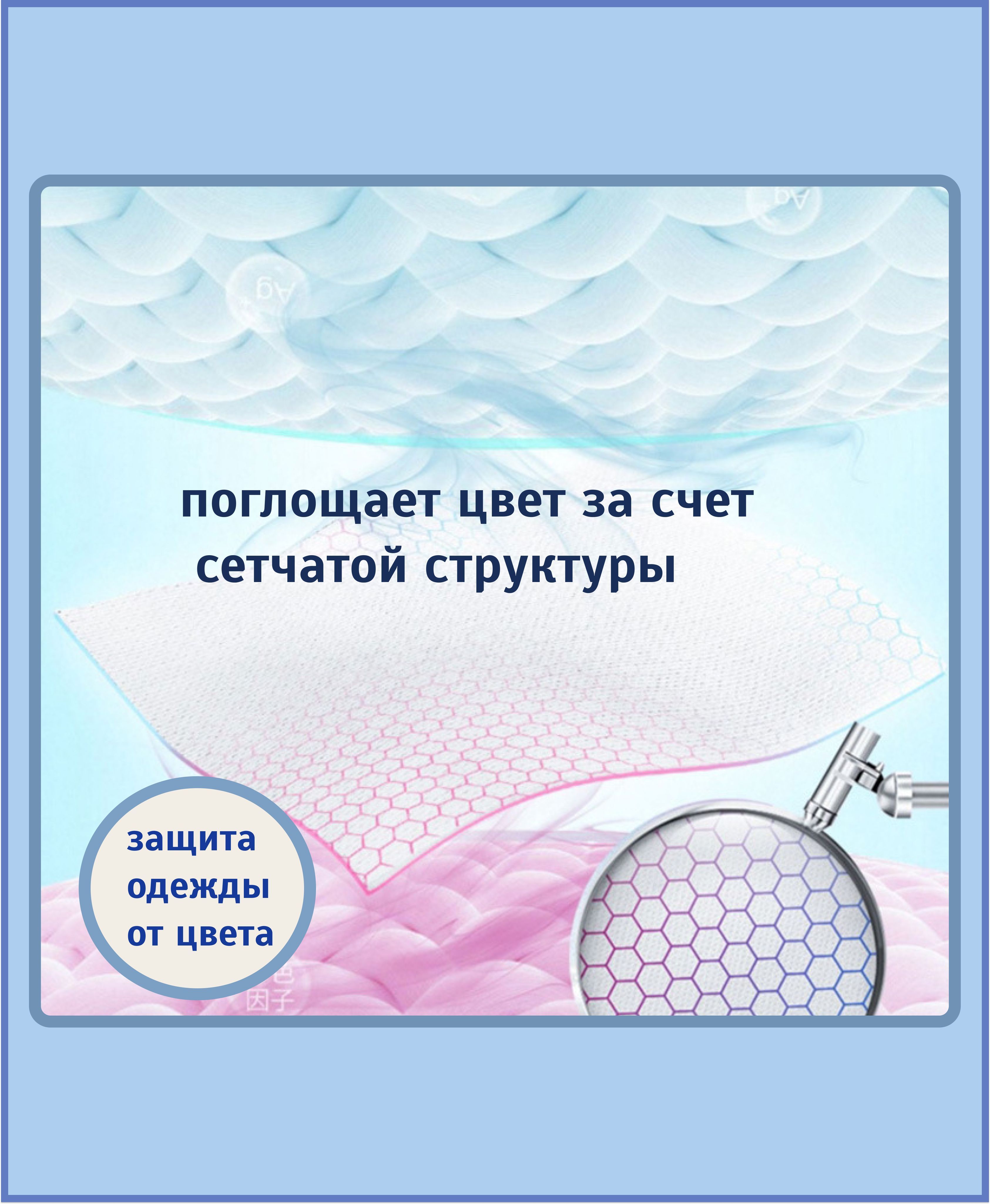 Комплектация Салфетки магниты для микс стирки ( Салфетки для стирки цветного белья против окрашивания / ловушки для цветного ) 50 штук Размер: 10x14cm