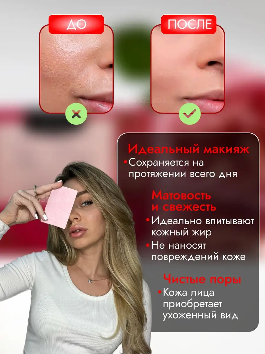 Салфетки матирующие для лица безворсовые от жирного блеска