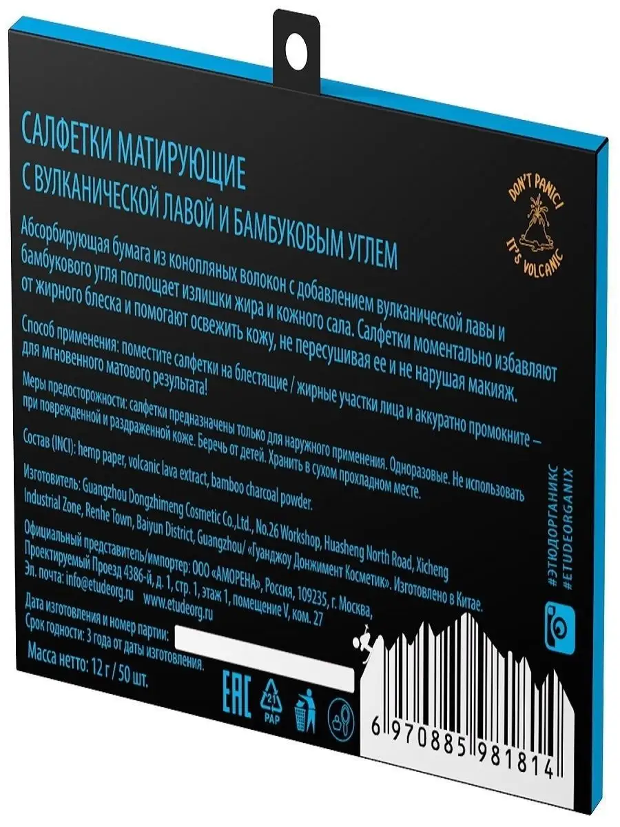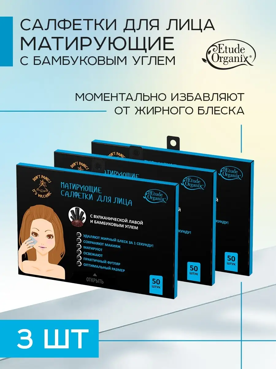 Салфетки матирующие с бамбуковым углем, 12г 3шт